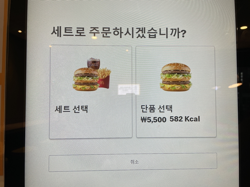 世界各地で値段の違うビッグマックですが、韓国の価格は単品で5500ウォン(約585円)。単品480円の日本より少し高いです。ビッグマックの味は世界共通といわれているので、韓国では日本にないプルコギバーガーや上海バーガー、期間限定の韓国メニューをおすすめします。