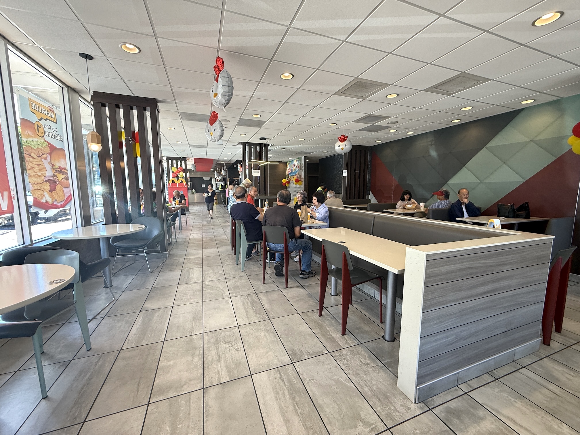 そんな懐かしさを思い出させてくれたのが、先日ふらりと立ち寄った午後のマクドナルド。ランチを食べそびれてしまったものの、どうしても何かしっかりしたものを食べたくなり、マキキの店舗へ。15時を過ぎていたにもかかわらず、ドライブスルーは長蛇の列。モバイルオーダーで駐車場まで運んでもらう人の姿も見られました。店内は6〜7割ほどの客入り。地元の人の根強い人気を感じます。