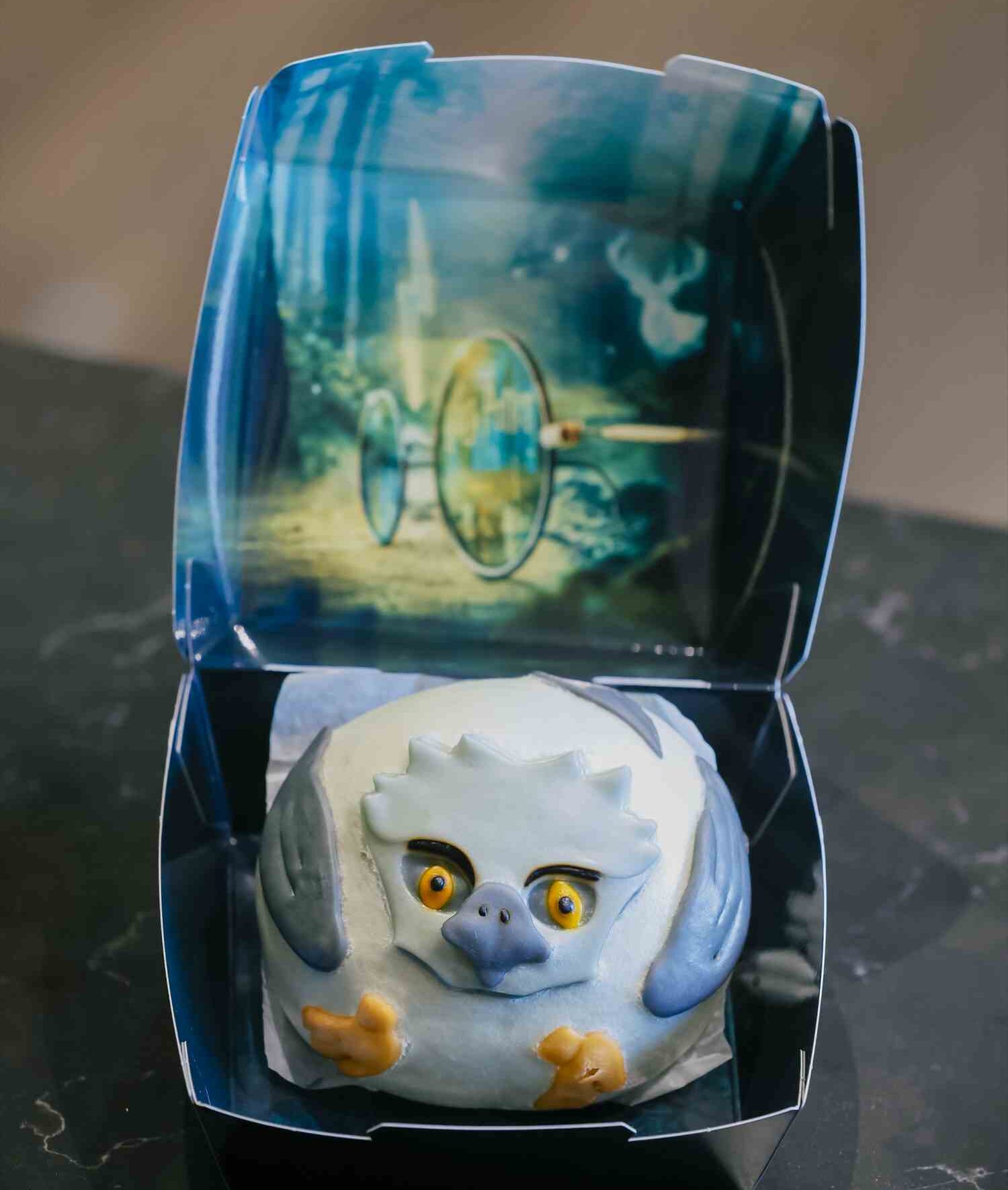 ショップ2階のバタービールバーでは、魔法界で人気のドリンク「バタービール」を味わうことができます。また、原宿限定メニューである「バックビークまん~ピザフレーバー~」も登場。魔法動物バックビークをモチーフにした見た目がキュートです。バタービールと相性のよい、ほんのり塩気の効いた味わいをご賞味あれ!