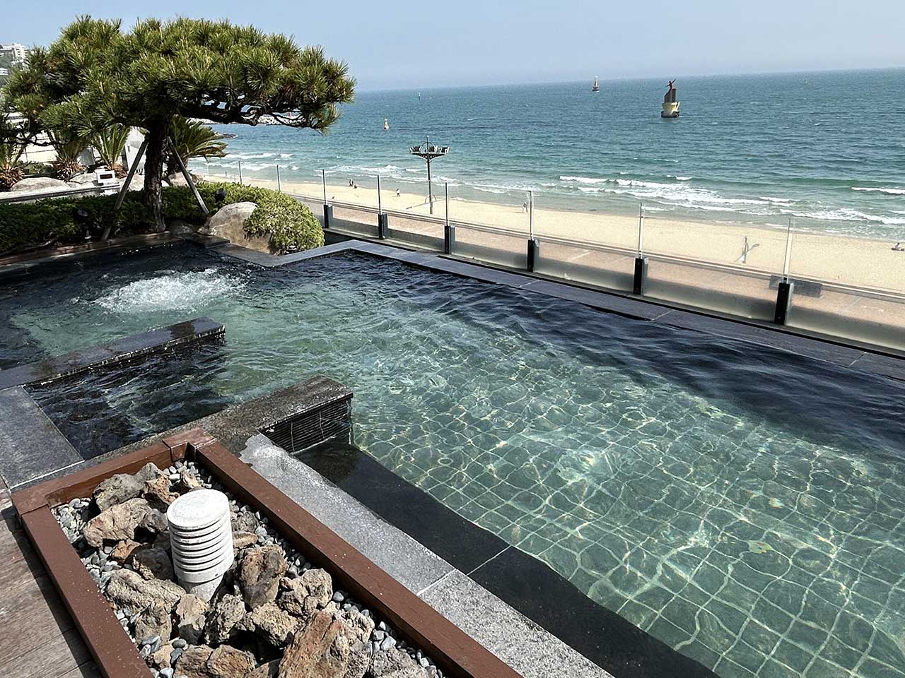 韓国第2の都市、釜山(プサン)の東に位置する海雲台温泉は、豪華なリゾートホテルから素朴な共同浴場まで、豊富な選択肢で旅行者を迎えてくれます。日本に比べ寒冷な韓国では露天風呂付きの施設は多くないのですが、カジノを併設した豪華宿のパラダイスホテル釜山には庭園風の露天風呂があり、観光客には人気です。