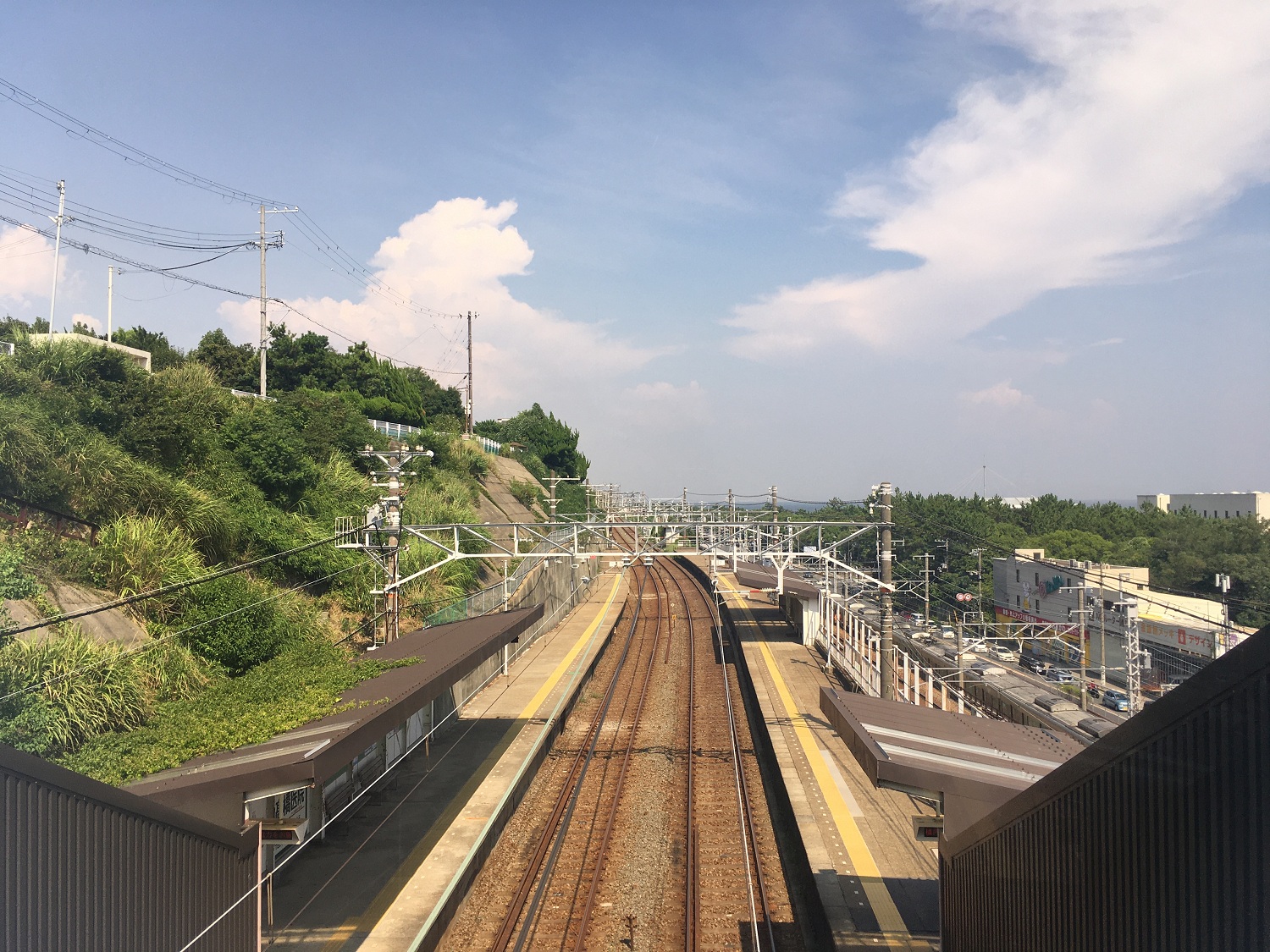 夏のある日、実際に東垂水駅を訪れてみました! 海岸に近い立地のため、電車のドアが開くとフワッと潮の香りがただよい、湿度を帯びた空気が車内冷房で冷えた体にまとわりつくのを感じました。