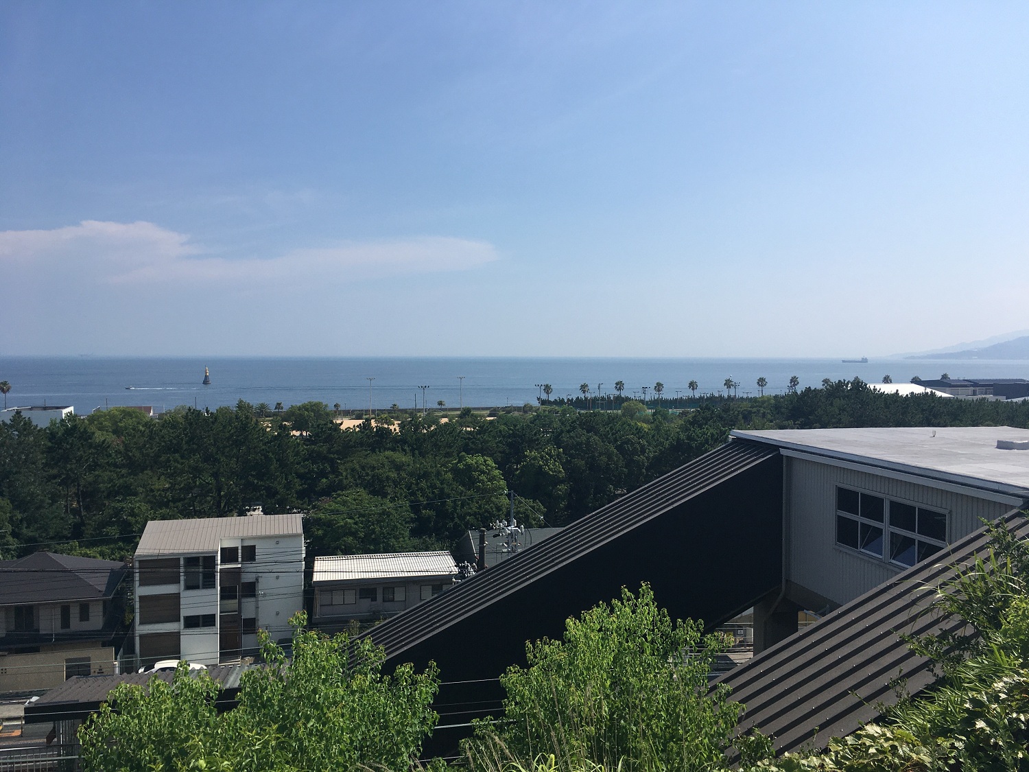 東垂水駅の出口は南北の2ヵ所あり、改札を出て右に進むと数段の階段で駅舎の外に出ます。駅のすぐ目の前には住宅地が広がります。北口を出てすぐ振り返ると、線路や国道越しに瀬戸内海が目の前に広がり、空気が澄んでいる日ははるか遠くの紀伊半島まで見えます