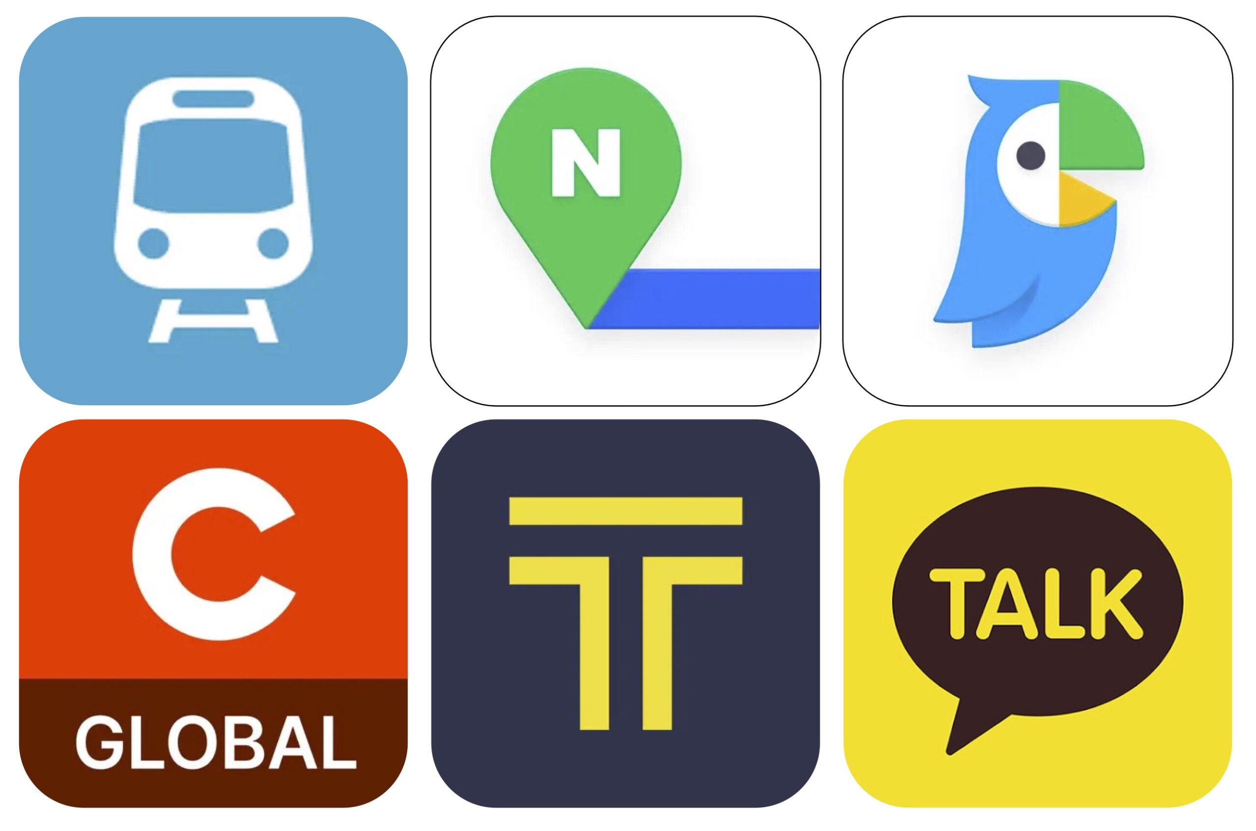 左上:Subway Korea、上段中央:NAVER Map、右上:Papago