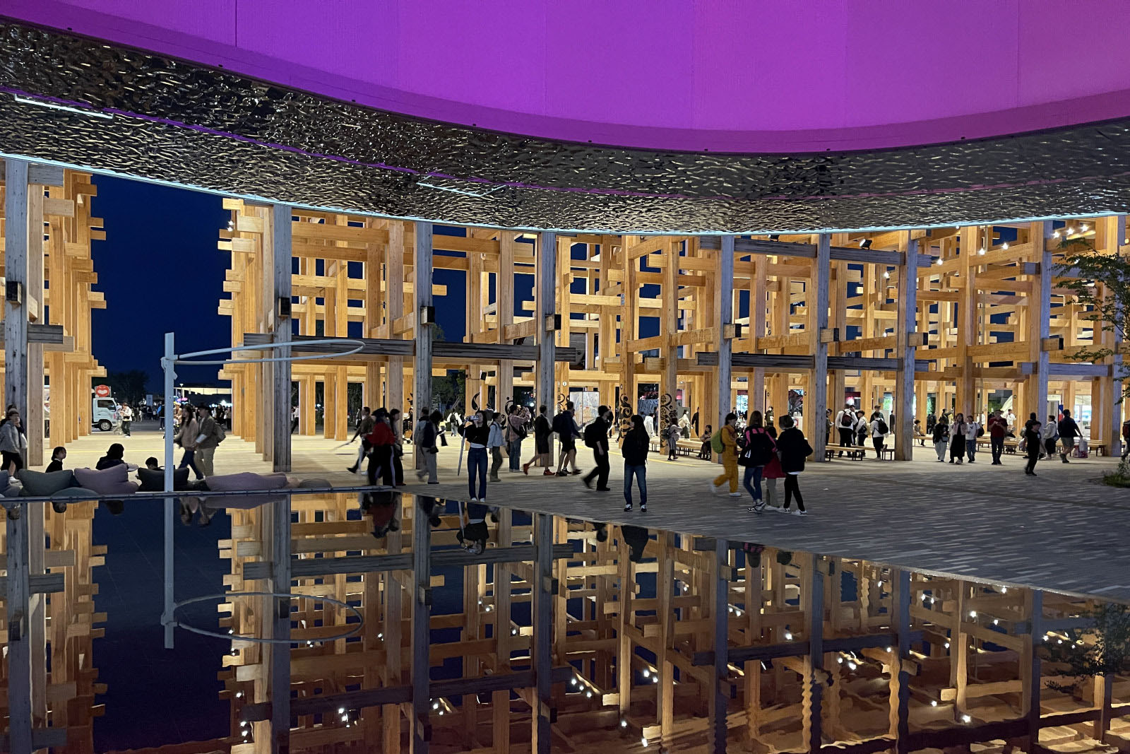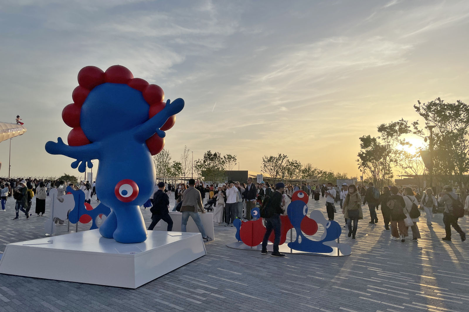 夕景や夜景の美しさは期待以上のものでした。万博会場が西の端に位置しているので、夕日がさえぎられることなく会場を照らしますし、夜のパビリオンは昼の姿を一変させるライティングやイルミネーションが施され、目を楽しませてくれます。夜はイベントも開催されるので、案外忙しいのですが、夜景を見るためだけにリングを1周したいと思うほどです。