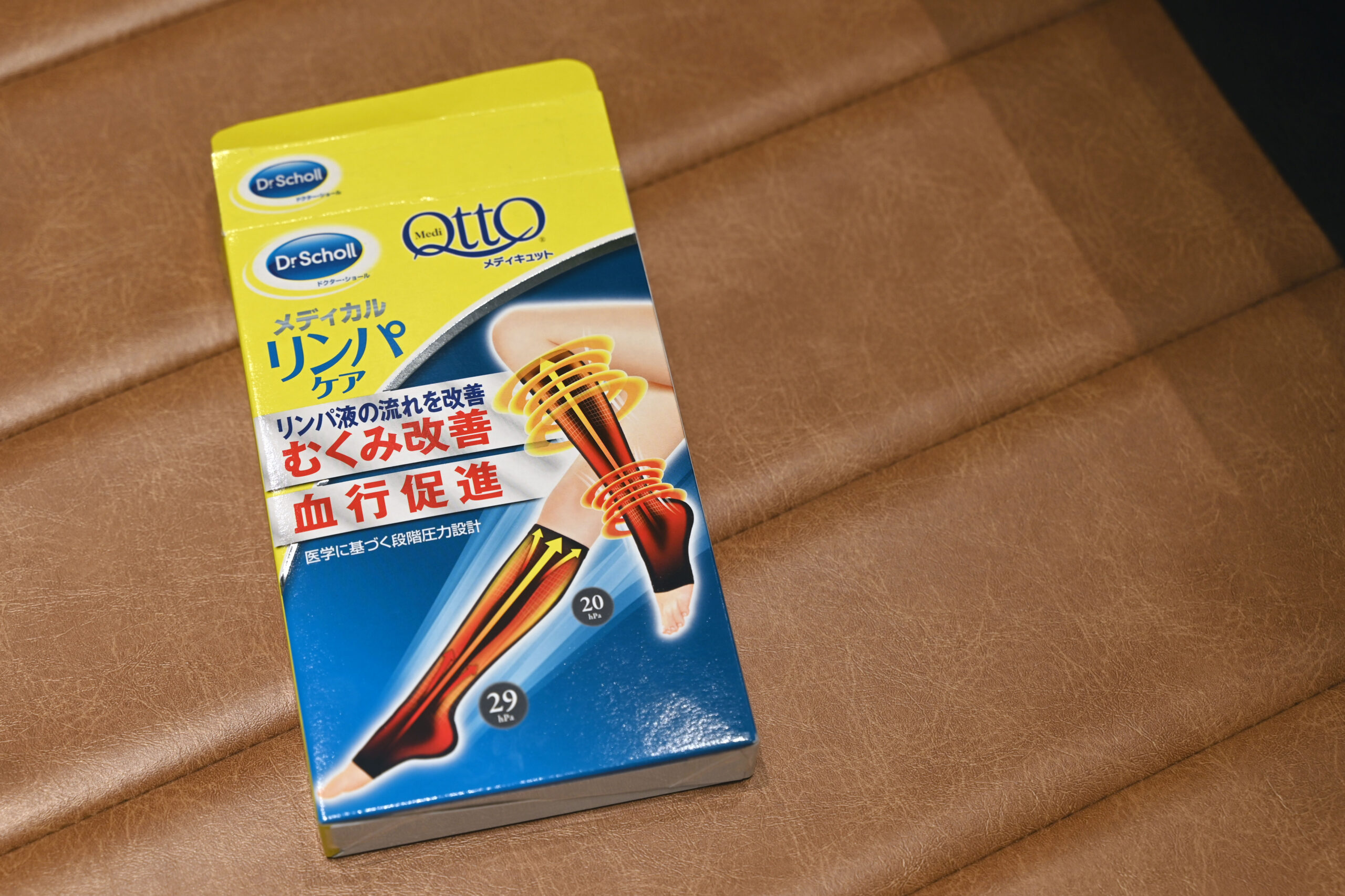 機内で使用するなら、腿まであるロングタイプよりもふくらはぎまでのショートタイプのものが使いやすいと思います。往復で使用することを考えると、極力汗をかきづらいものがいいので、つま先が出ているタイプのものを選んでいます。寒いときはこの上からさらにソックスを。足がパンパンになる長距離フライトの必需品です。(編集室・家田)
