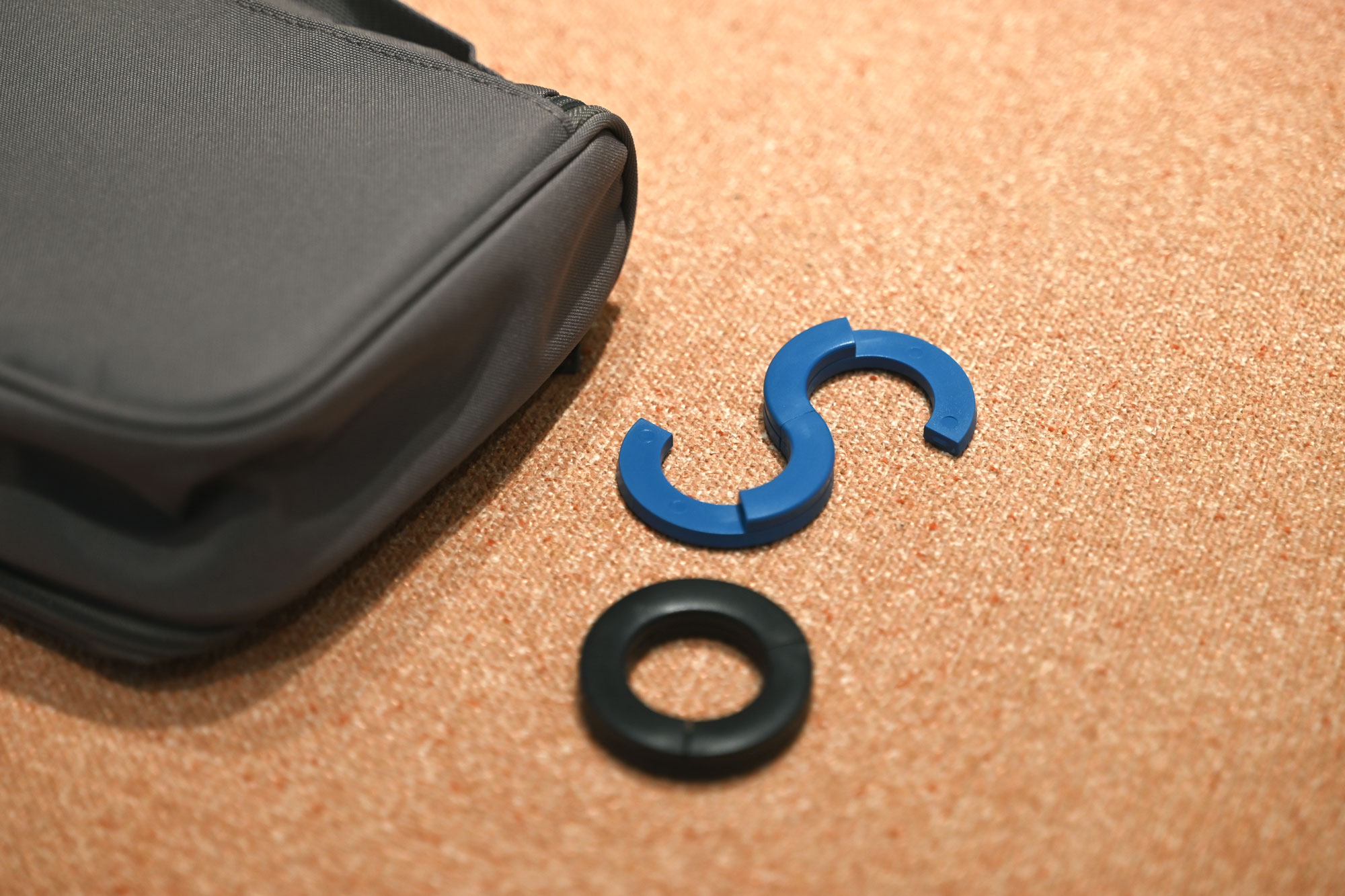 S字型を丸いO字型に変えられる無印良品のS字フック。カバンの持ち手に付けておけるので、持ち運びやすいのが魅力です。機内では手元に置いておきたいものを小さな収納バッグにまとめ、このフックで座席の前に掛けておけば、とても便利。アウトドア用品として人気の「ヒーロークリップ」(※無印良品の商品ではありません)は同じような機能を持ちますが、4000円前後することも多め。その点、このフックは390円という手頃な価格で、日常から旅まで幅広く活躍してくれるアイテムです。(編集室・福井)