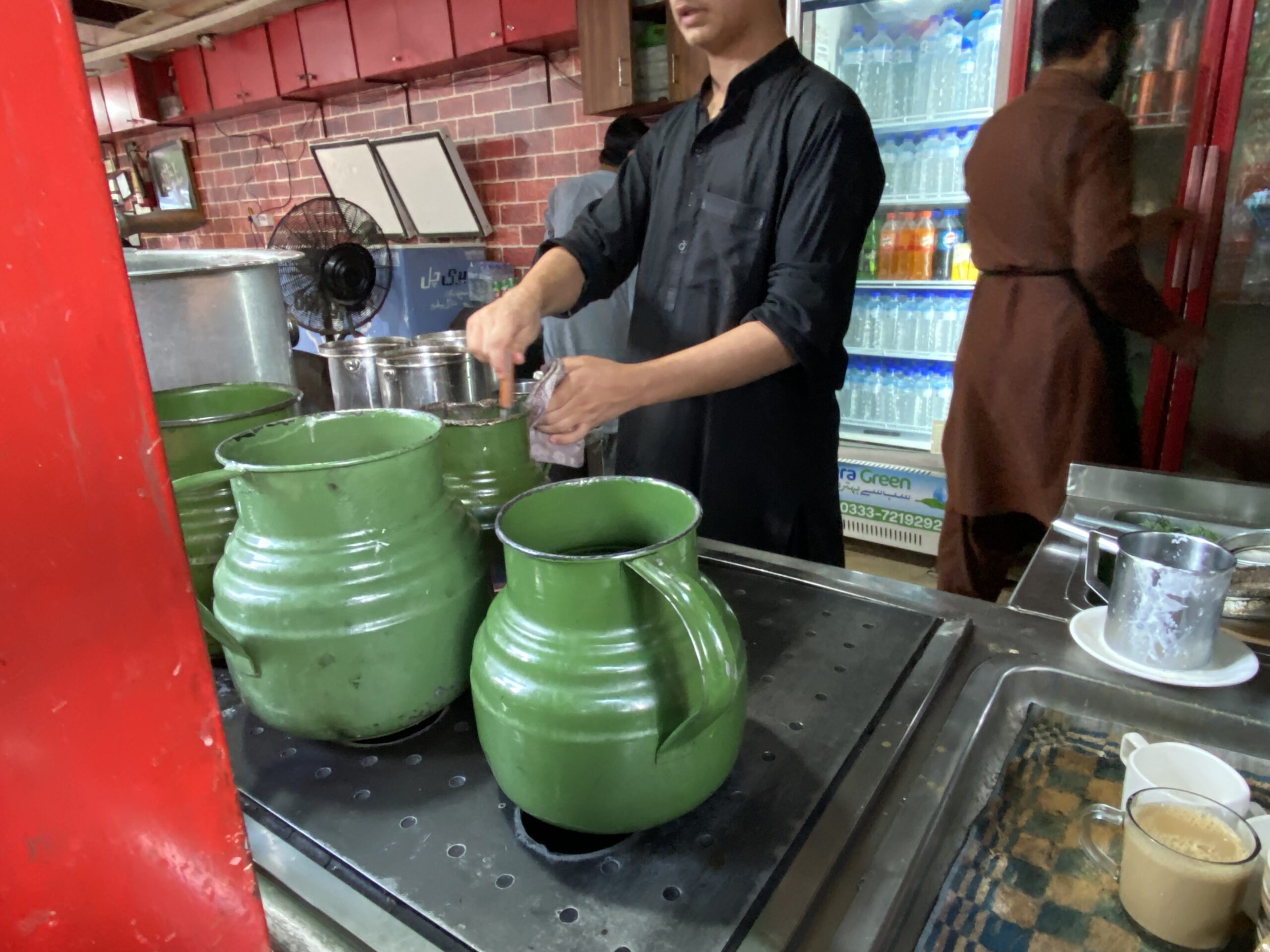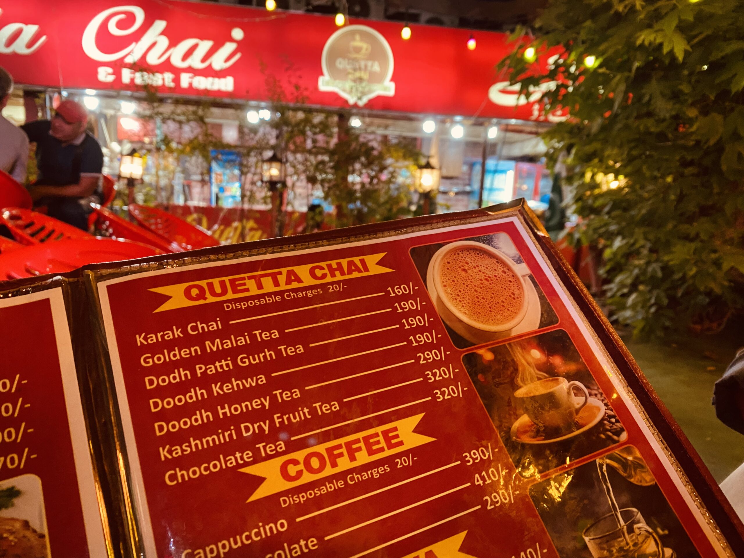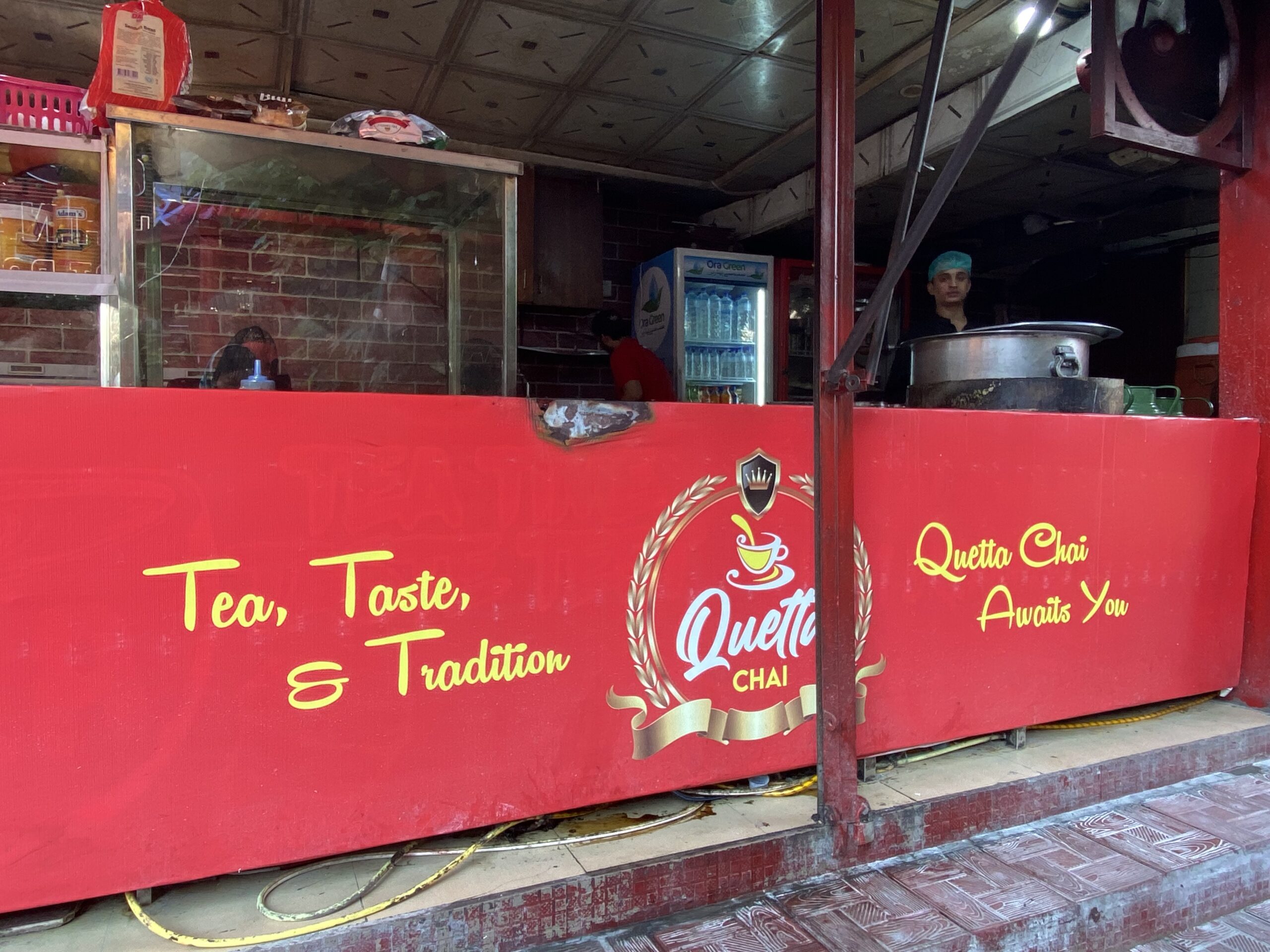 イスラマバードのジンナンマーケットにある「Quetta Chai」は市内にいくつも店舗を構える、手頃な価格で人気のチャイのお店です。お店の外にはテラス席がずらりと並び、開放的な雰囲気です。筆者が訪れたのは昼間でしたが、夜になるとさらに人が集まり、とても賑やかになります。