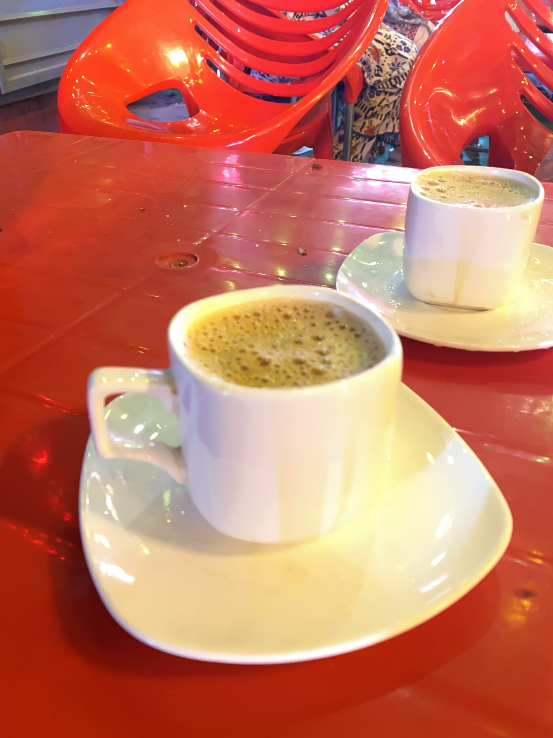 緑茶にミルクを加えたもの。ホットミルクのような味にほんのり茶葉の香りがします。(Doodg: 牛乳、Kehwa:緑茶)