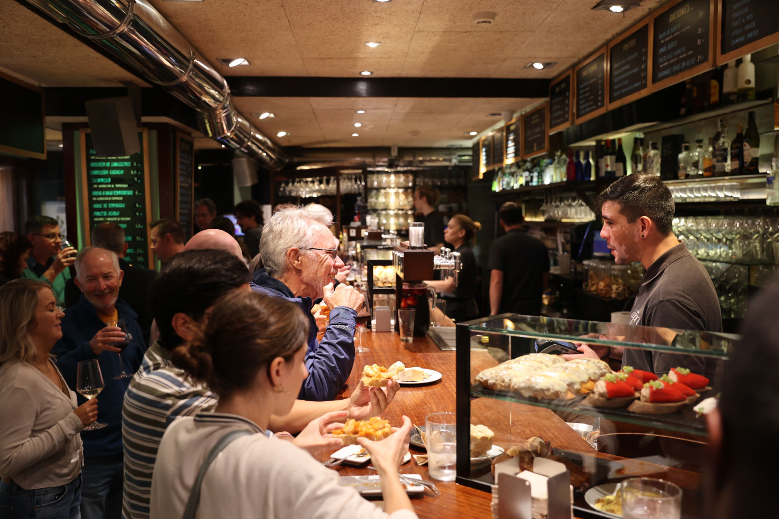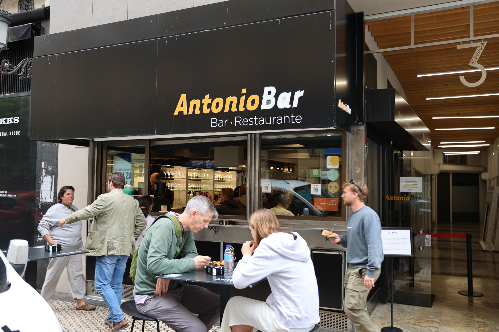 3店目は同じくフェルミン・カルベトン通りにて、ボルダ・ベリに負けず劣らずにぎわっているバル・スポーツへ。時間によってはあまりの混雑ぶりにカウンターまで辿り着くのもひと苦労。ですがスタッフの方々はとても気さくで、日本人とわかると「ウニ?」「カニ?」と陽気に話しかけ、日本語メニューも持ってきてくれます。