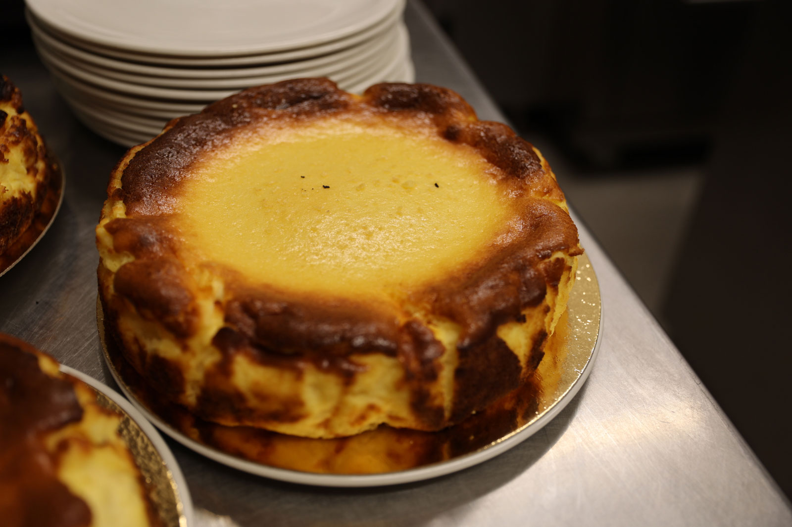 焦げ目がついた外側はサクッと、中はとろとろの食感で、クリームチーズの濃厚な味わいは一度食べたら忘れることができません。ほとんどのお客さんがこのチーズケーキを目当てに行列を作っており、イートインとテイクアウトの割合は半分ほどでしょうか(なかにはホールで購入していく地元客も!)。もちろん店内で食べる場合、コーヒーはもちろん、シェリー酒と合わせても相性抜群です。