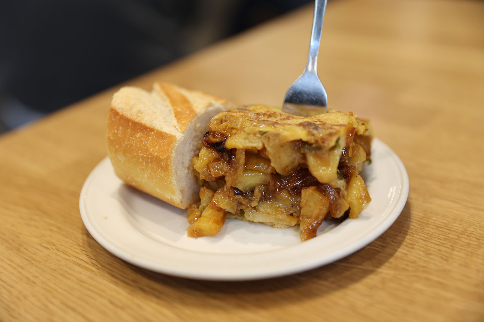 「トルティージャなんてどこで食べても同じでしょ」と思ったあなた。正直、私もそう考えていたのです。しかし、いざ食べてみると卵の半熟具合やオリーブオイルの香り、甘くキャラメリゼされた玉ねぎ、ベーコンの塩加減など、トルティージャを構成するすべてが完璧にハーモニー!! ひと皿食べてさくっと次の店へと思っていたのが、まさかのおかわりをしてしまう(そして帰国後はネットでレシピを検索し再現を試みる)ほどハマってしまいました。