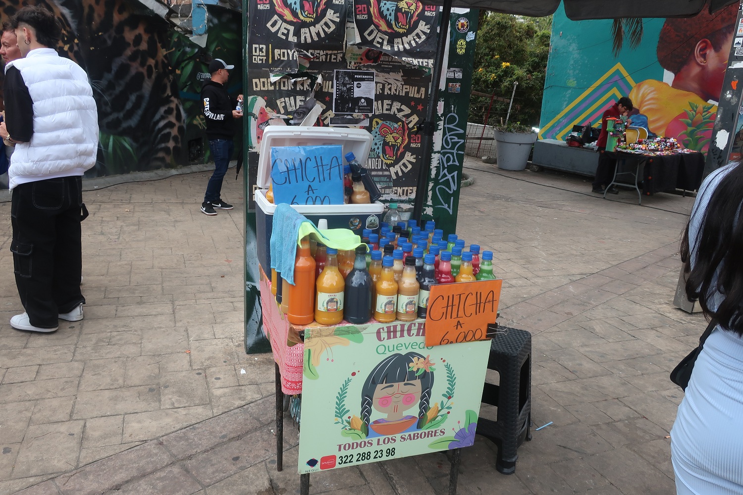 1832年には広場の名前の由来となったフランシスコ・ケベード牧師によって泉が築かれ、現在では植民地時代の建物と現代のグラフィックアートが融合した空間として、昼間は多くの人々でにぎわっています。広場の屋台では「チチャ(Chicha)」と呼ばれる伝統飲料が売られています。トウモロコシを発酵させた自家製のカラフルな飲み物で、10種類以上の味があり、試飲もできるため、好みの味を選んで飲みながら散策を楽しめます。