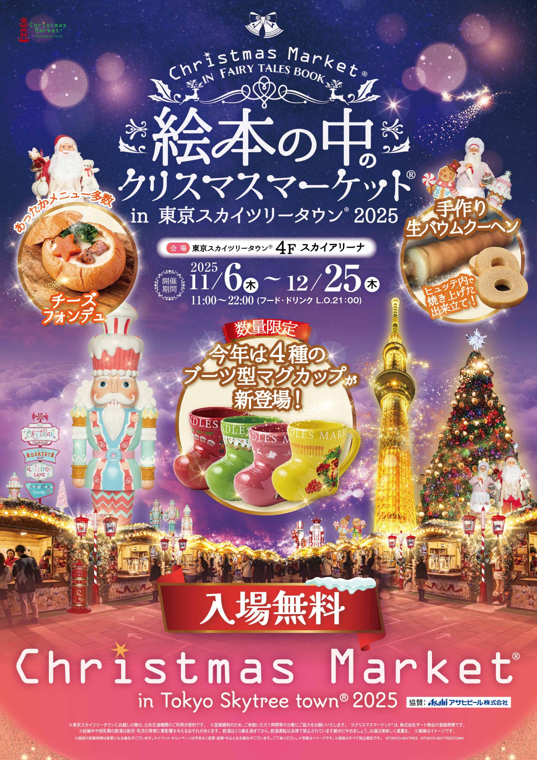 「絵本の中のクリスマスマーケット in 東京スカイツリータウン(R) 2025」は、日本にいながらヨーロッパのクリスマスマーケットの雰囲気を味わえるイベント。冬の風物詩をぜひ楽しんでください!