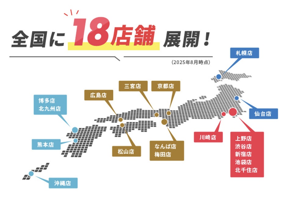 | 上野駅前店 | 東京都台東区東上野3-16-8 | 03-4332-7551 | 10:00~19:00 | 水曜日 |