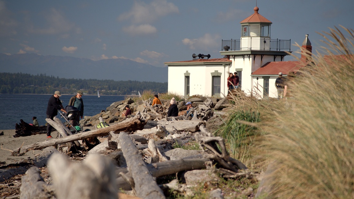 西には200マイルにわたって海岸線が続き、その先にはフェリーやクルーズ船が行き交うピュージェット湾が広がっています。湾に面したディスカバリー・パークは森林や草原、ビーチなど擁する266ヘクタールもの広大な公園で、海風を感じながらハイキングやバードウオッチングを楽しむことも。トレイルを進んだ先、西端に立つ白い灯台ウエストポイントライトハウスは、フォトスポットとしても人気です。
