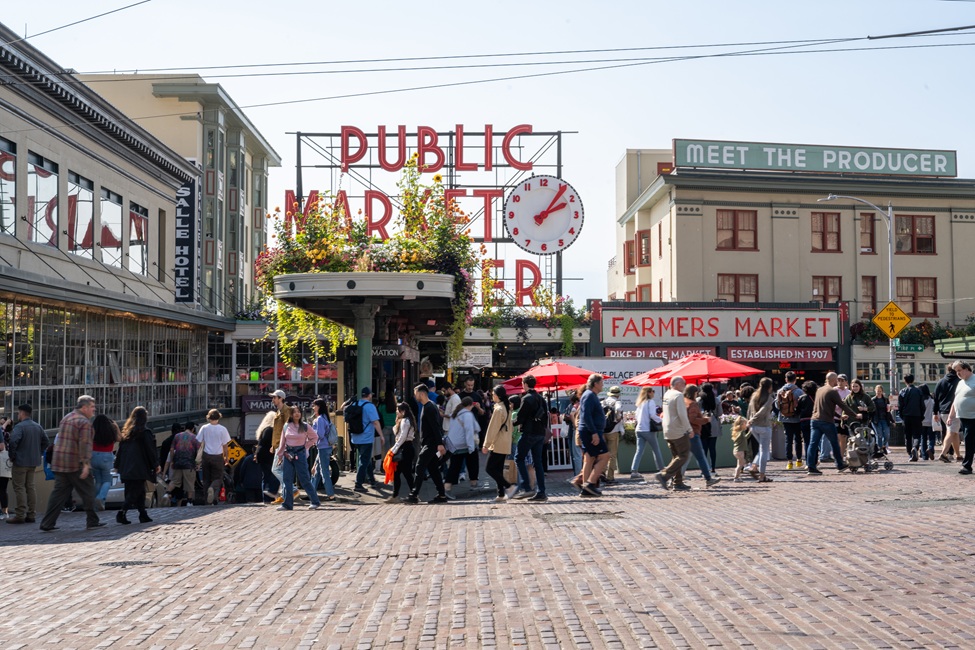 シアトル随一の観光名所といえば、100年以上の歴史を誇るパイク・プレイス・マーケット。500を超える店舗が軒を連ね、新鮮な魚介や野菜、花、アート雑貨などが並びます。名物の“魚投げ”パフォーマンスで知られる魚市場や今や世界に知られるスターバックス1号店もここに。地元食材を巡るフードツアーも人気です。