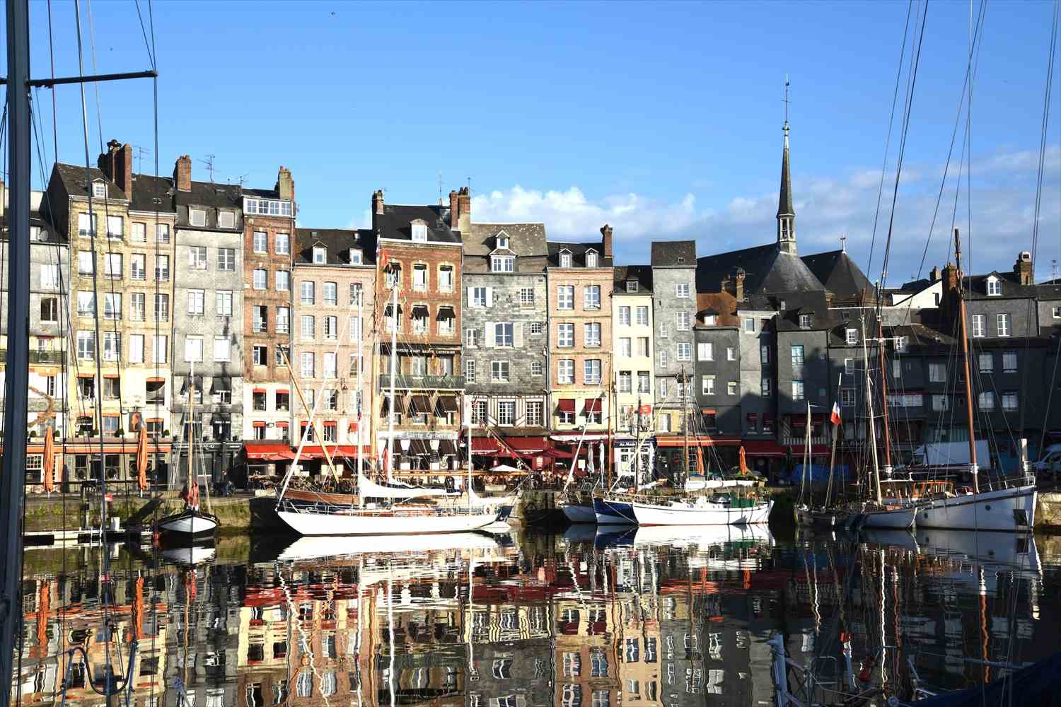 町から高台に上った所にある「ラ・フェルム・サン・シメオン」という高級ホテルは、かつて印象派画家たちが集い、常宿にしていた場所。モネは、オンフルールからラ・フェルム・サン・シメオンに向かう道の雪景色も描いています。旧港の風景は、画家たちでなくても絵を描きたくなる美しさです。