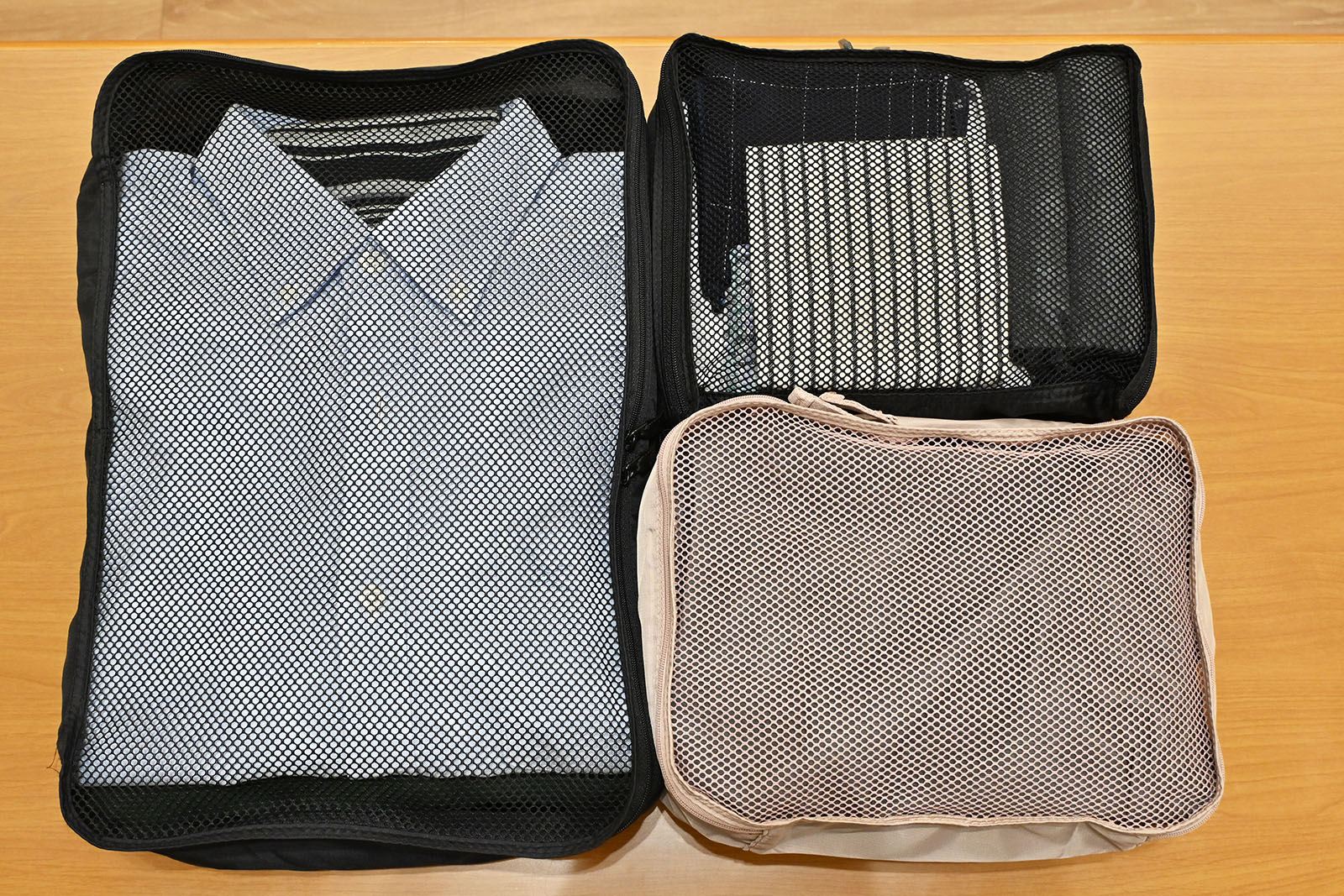 仕分けした荷物を、まず小分け袋(トラベルポーチ)に入れましょう。スーツケースへのパッキングも、小分け袋を組み合わせて入れるだけで済むので、簡単に行えます。