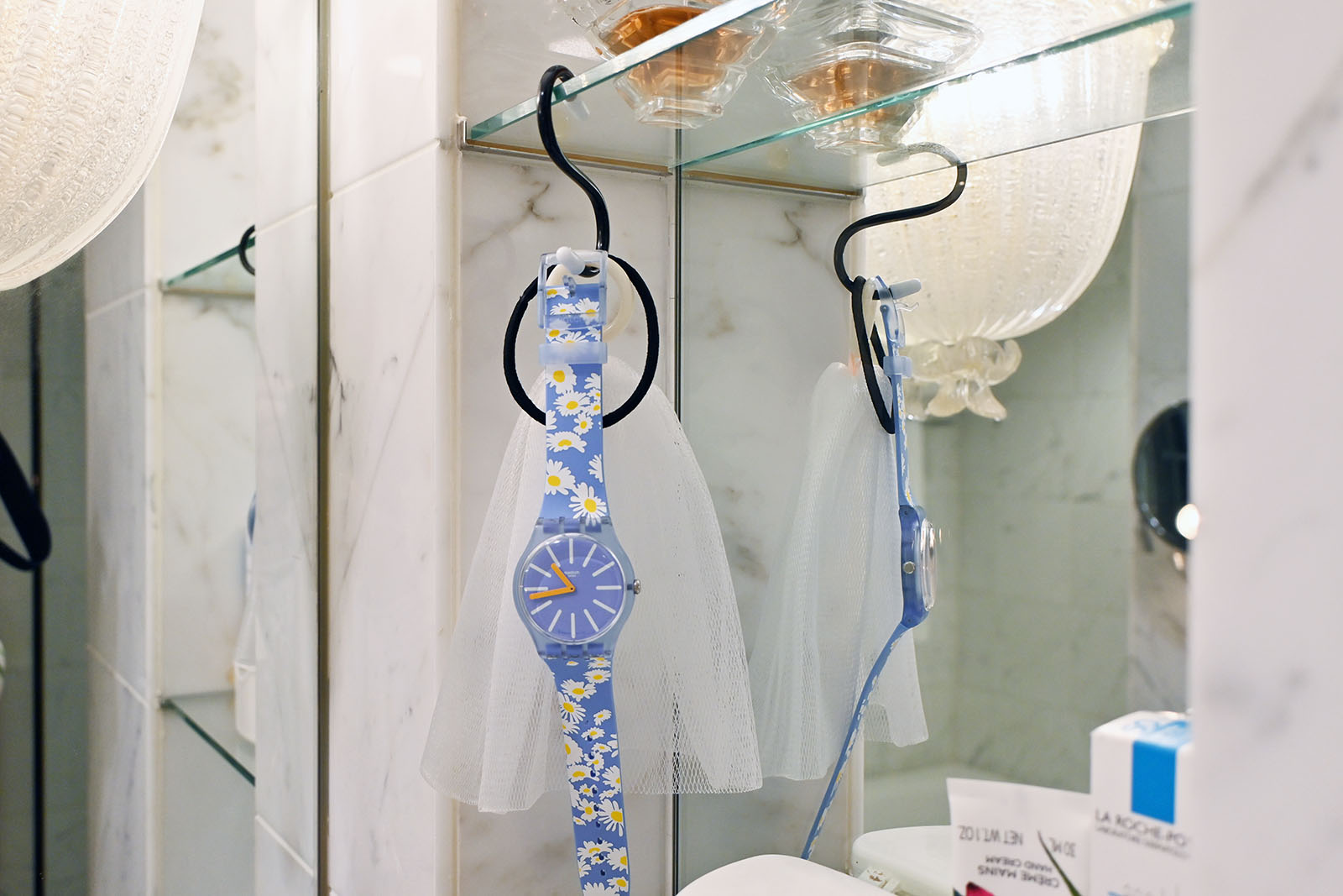 S字フックがあれば、洗面所でちょっとしたものを乾かしておくのにも使えます。洗濯ばさみは本来の目的のほか、メモを挟んで立てておくことも。針金ハンガーは、あえて変形させて使うことで、洗濯物を立体的な形で干すこともできます。