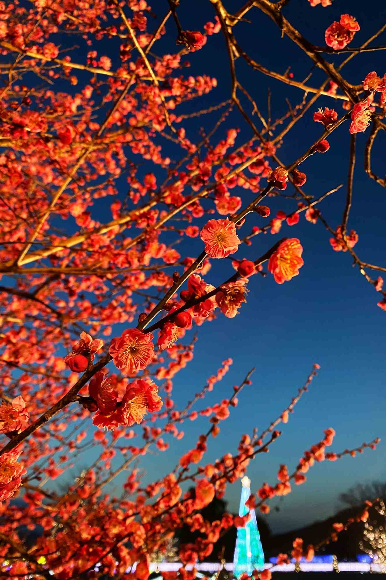 1月1日~2月15日の間は、新年らしいイルミネーションと冬咲きボタンのライトアップが登場します。ロウバイや寒紅梅など、新春のお花のライトアップも楽しめます。