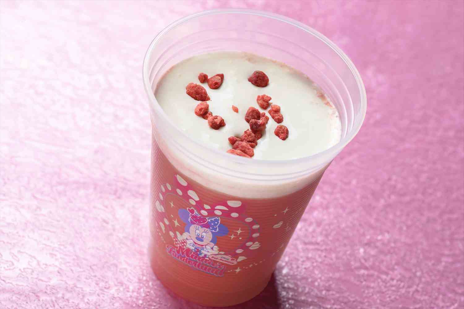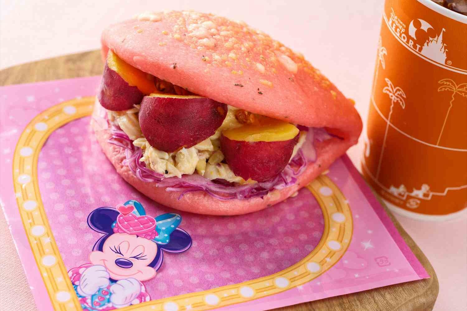「スウィートハート・カフェ」では、ミニーをイメージしたピンク色のバンズに、香ばしいマスタードチキンと優しい甘さのさつまいもを包んだサンドを楽しめるスペシャルセットを販売。見た目のかわいらしさと味わいの奥行きを同時に楽しめるメニューです。ほかにも、甘酸っぱいベリーの味わいをベースに、ドライストロベリーをトッピングしたホットベリードリンクも販売されます。