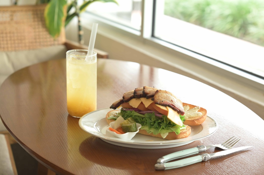 マニャガハ島から戻ったらガラパン地区でランチタイムへ。サイパンで今最も人気なお店のひとつSweet Lane(スイートレーン)は2022年にオープンして以来その食事のクオリティの高さで評判です。それもそのはず、夫はシェフ、妻はパティシエというオーナーの2人は、日々パンやグラノーラ、ベーコンにいたるまで店で出すものはすべて手作りしているんだとか。細部までこだわって丁寧に作られた料理の数々はボリュームがありながらもペロっと食べられてしまいます。良心的な価格設定もうれしいお店で、ローカルの人々で常ににぎわっています。