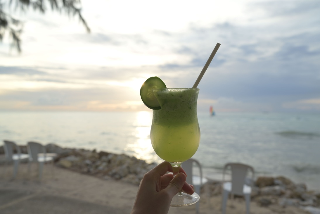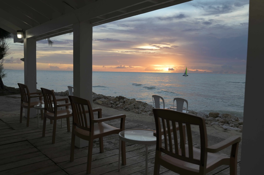 夕暮れ時にぜひ訪れたいとっておきの場所がガラパン地区北部の高級ホテル、マリアナズビーチリゾート(旧ハイアットリージェンシー)内のバー、Skipper’s Bar(スキッパーズバー)。屋根付きのテラス席で風を感じながら飲み物片手に過ごすカクテルアワーは、最高の贅沢です。天気が良い日の夕暮れ時は目の前に日が沈み、ロマンチックな時間を過ごせます。