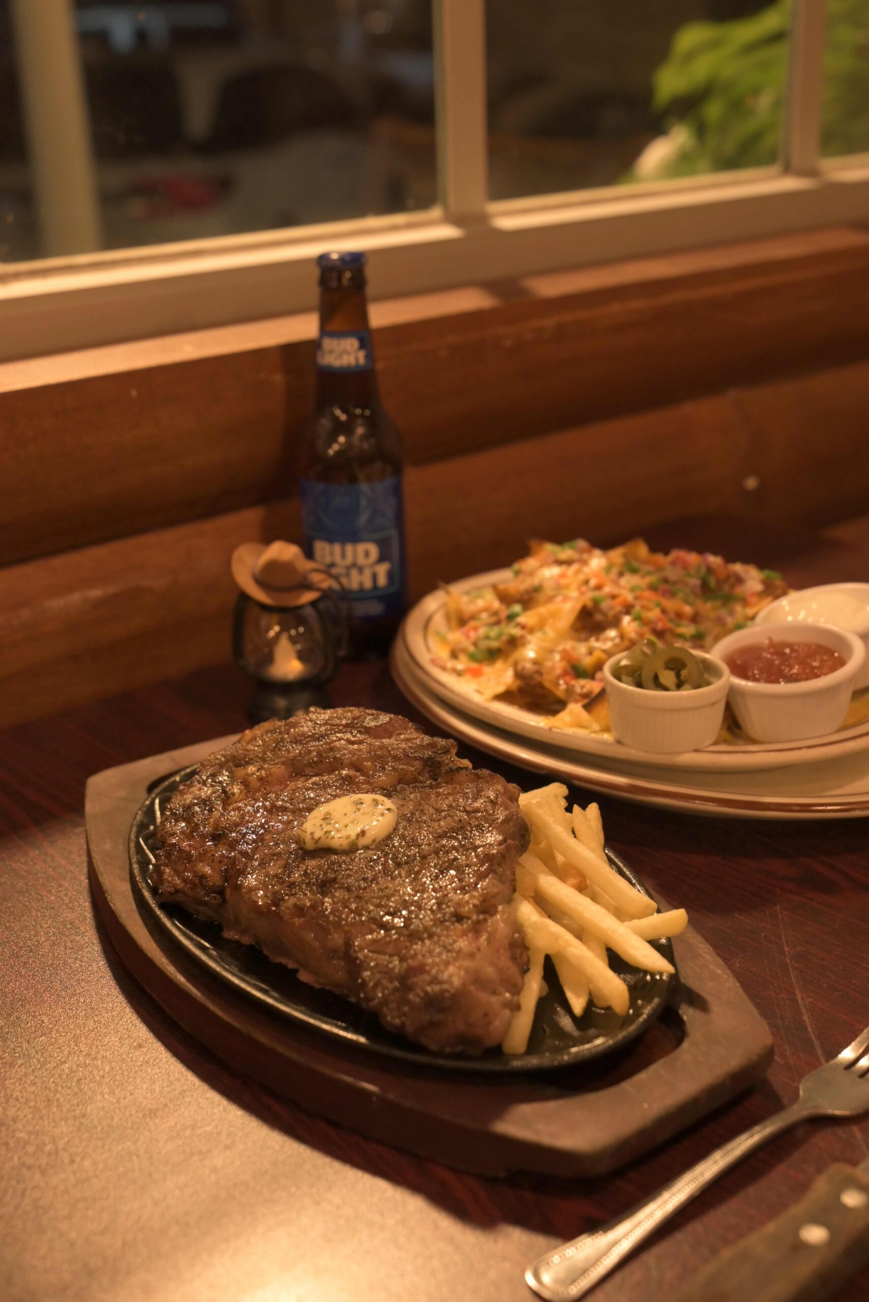 夕食はアメリカのアンガスビーフ協会が認めた最上級ランクの牛肉が食べられるサイパンきっての名店、カントリーハウスレストランで。驚くほどのやわらかさとコクは、さっぱりしていながらも旨味あるテンダーロインでも、牛肉らしい脂身も味わえるリブアイでも、どの部位でも感じられます。アメリカ西部を意識した内装や音楽にテンションもアップ!想像以上に重たくなく、ペロリと食べられてしまうので、少し多めに頼むのがおすすめです。