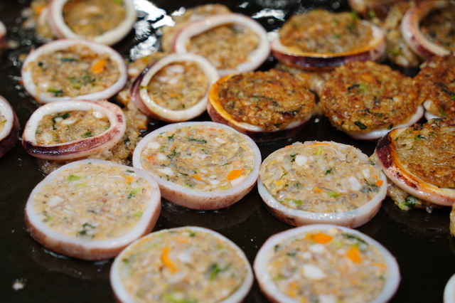 オジンオスンデとは、スルメイカの腹に具を詰めて蒸した韓国版のイカめし。もともとは朝鮮戦争時に北部から避難した人たちが作り始めたことが発祥といわれています。イカの中には、ひき肉やもち米、豆腐、野菜などが詰められています。