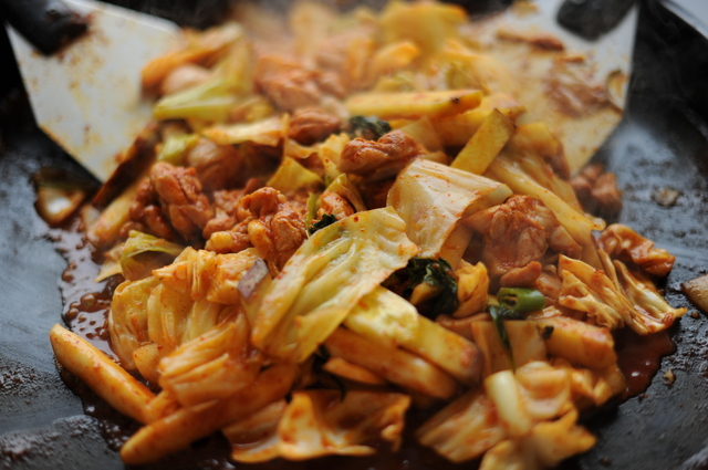 春川タッカルビとは、甘辛いソースに漬けた鶏肉とキャベツなどの野菜を焼いたタッカルビのこと。春川中心部の明洞にはタッカルビ通りがあり、タッカルビを楽しめる名店や人気店が軒を連ねます。