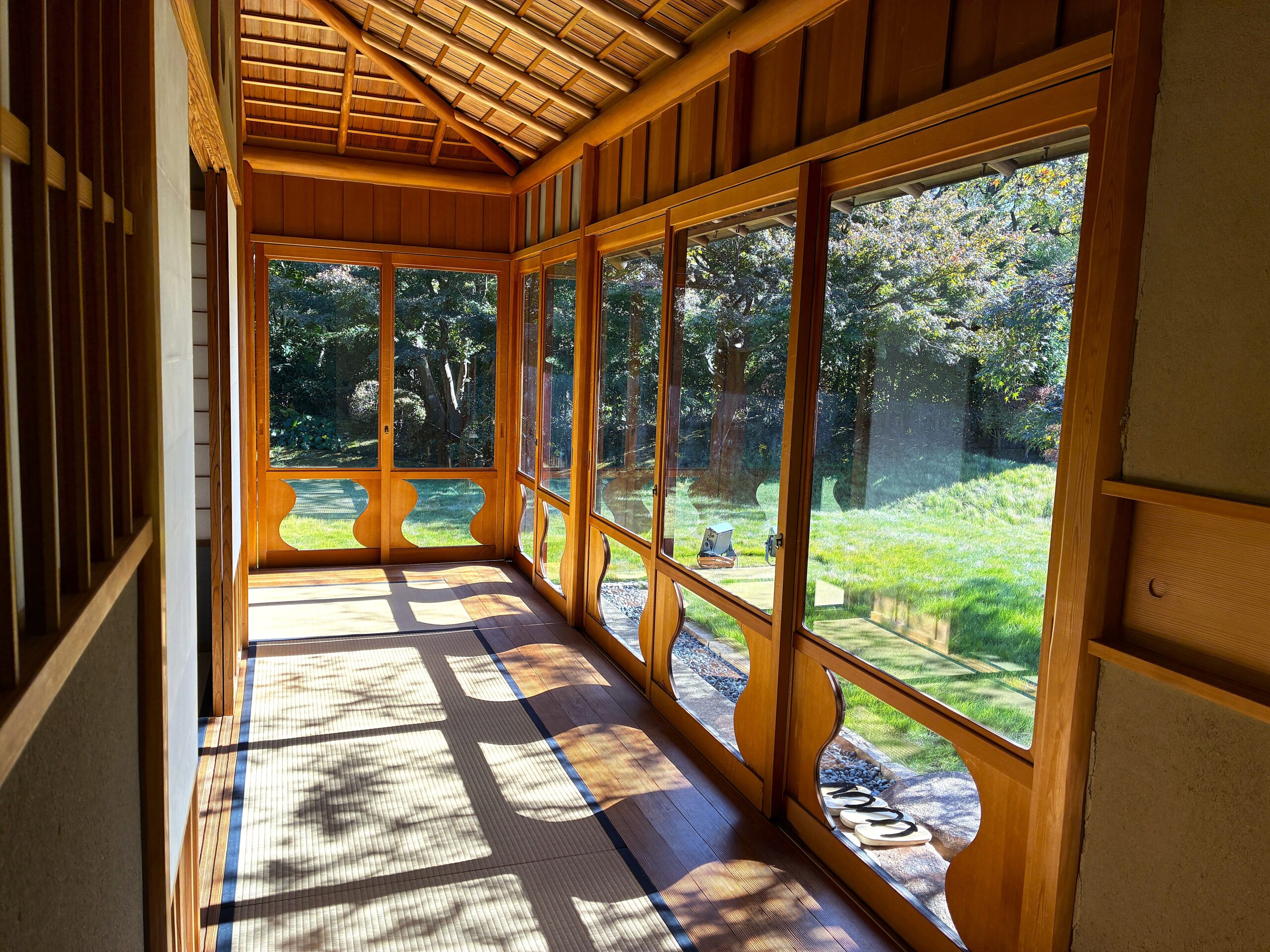 お茶はもちろん、茶室から見えるお庭や、日が燦々と差し込む廊下にできる影の形、欄間の細やかな細工など、部屋からの景色や内装も楽しむことができます。