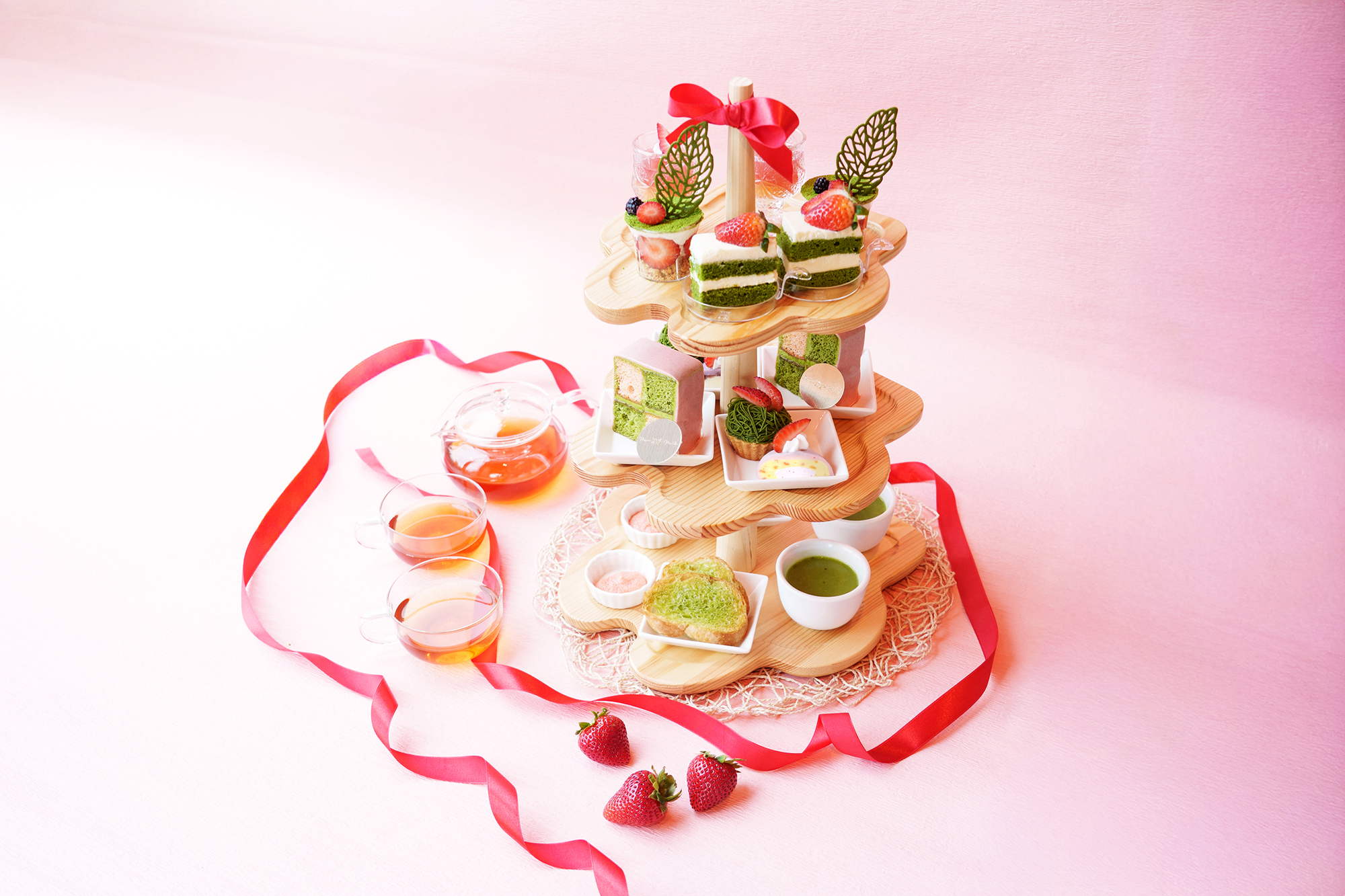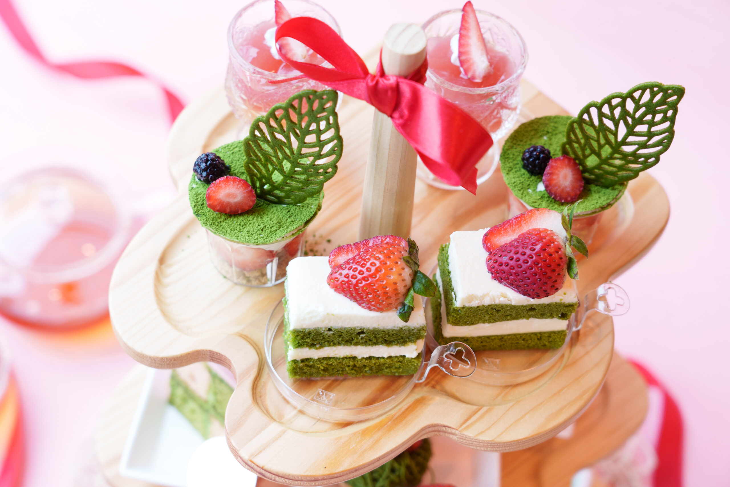 2026年1月5日(月)~3月31日(火)の期間限定で、抹茶と苺のアフタヌーンティーメニューも実施!こちらは静岡県焼津市で1979年に創業した、地元で愛される菓子屋ミラベルとのコラボスイーツです。