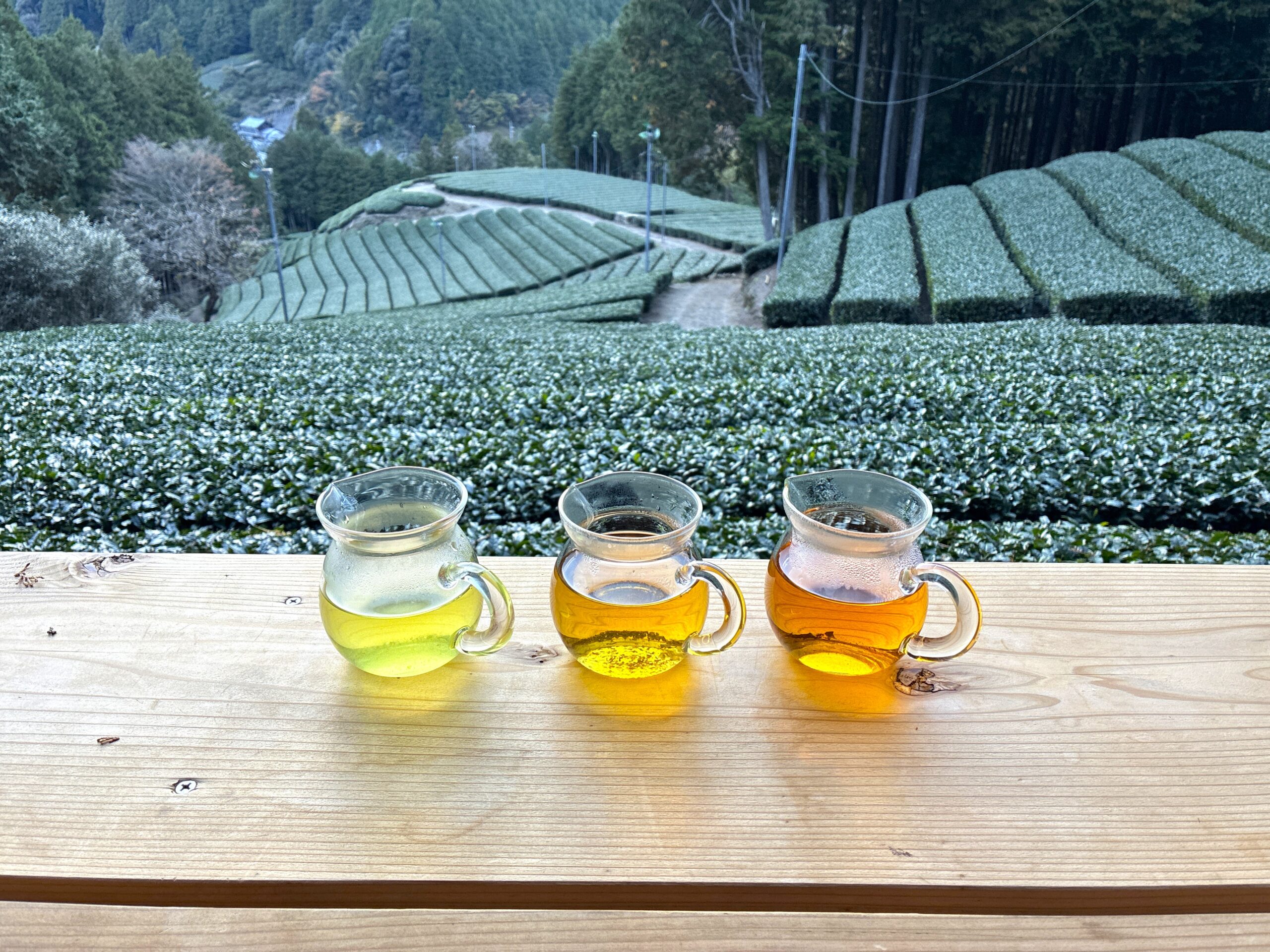 緑茶はやさしい甘みが引き立ち、和紅茶は驚くほどまろやかで渋みが少なく、ほうじ茶はとても香り高い味わい。同じ葉からつくられたとは思えない3種の違いに、お茶の奥深さを感じます。