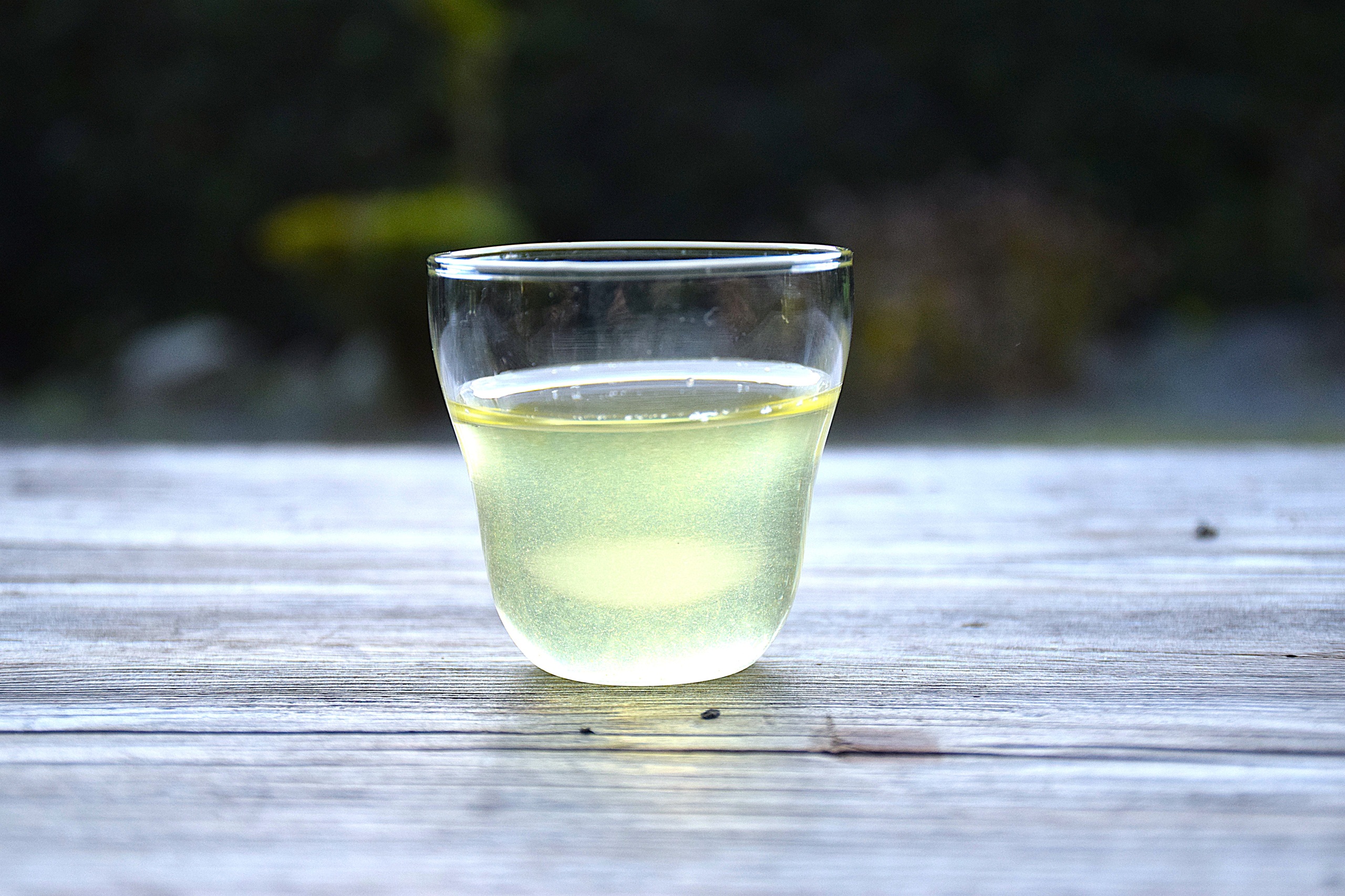 まずご自宅前のベンチでいただいたのは、朝から8時間ほどかけて抽出した水出し茶。