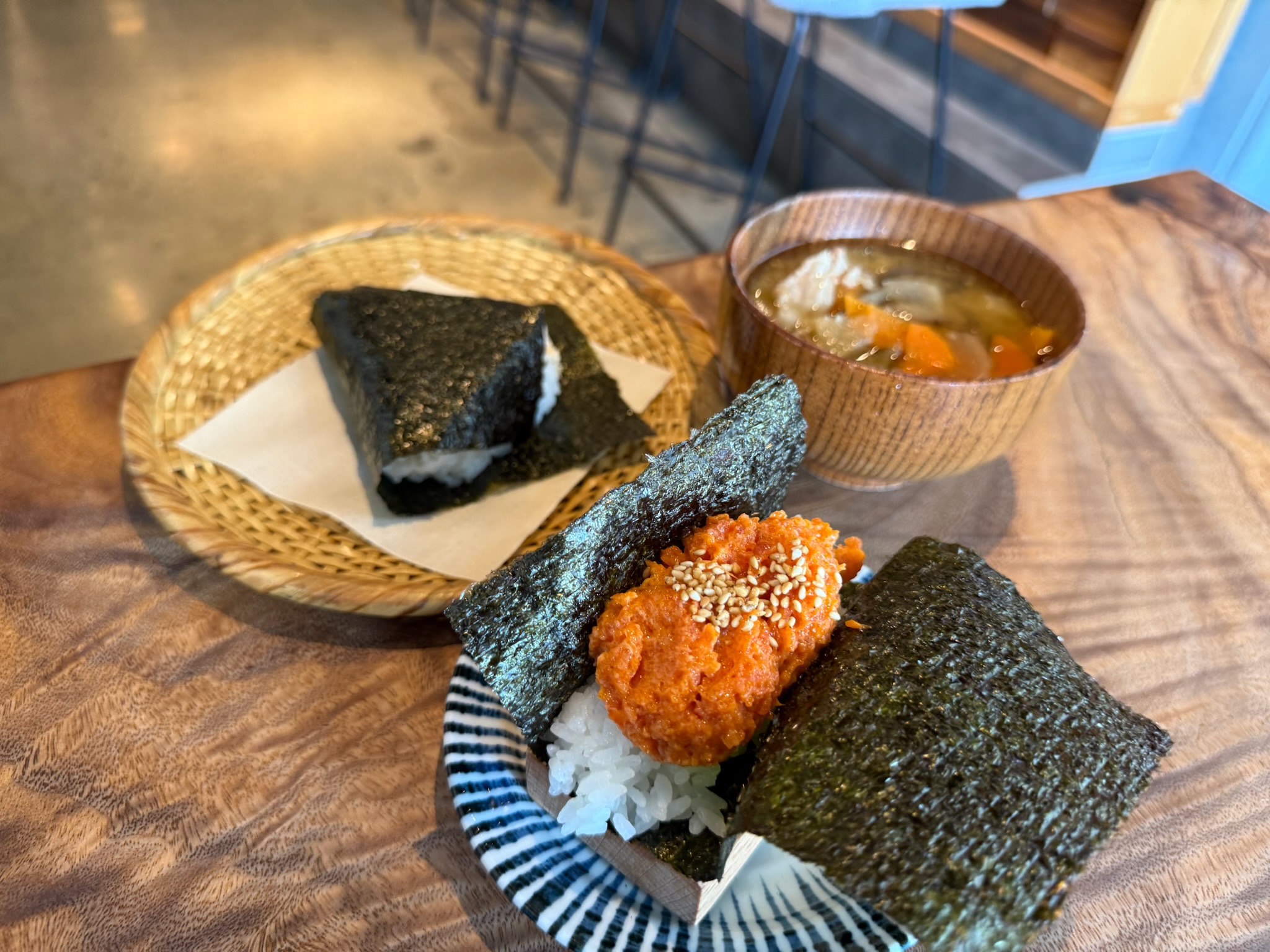 和食が恋しくなった時に知っていると心強いお店も誕生しました。11月にオープンしたばかりの、おにぎりと手巻き寿司専門店。店内には、まるでお寿司屋さんのようなカウンター席も。目の前にずらりと並ぶ具材を選ぶのも、また楽しいひとときです。お米は山形産の「つや姫」、海苔は有明産の初摘み海苔、お塩は自家製ブレンドと随所にこだわりが光ります。メニューには、焼きおにぎりもあるんですよ! スパイシーツナのハンドロールに、めんたいチーズの焼きおにぎりなど、海外でも”お米がちゃんとおいしい”、頼もしいお店です。