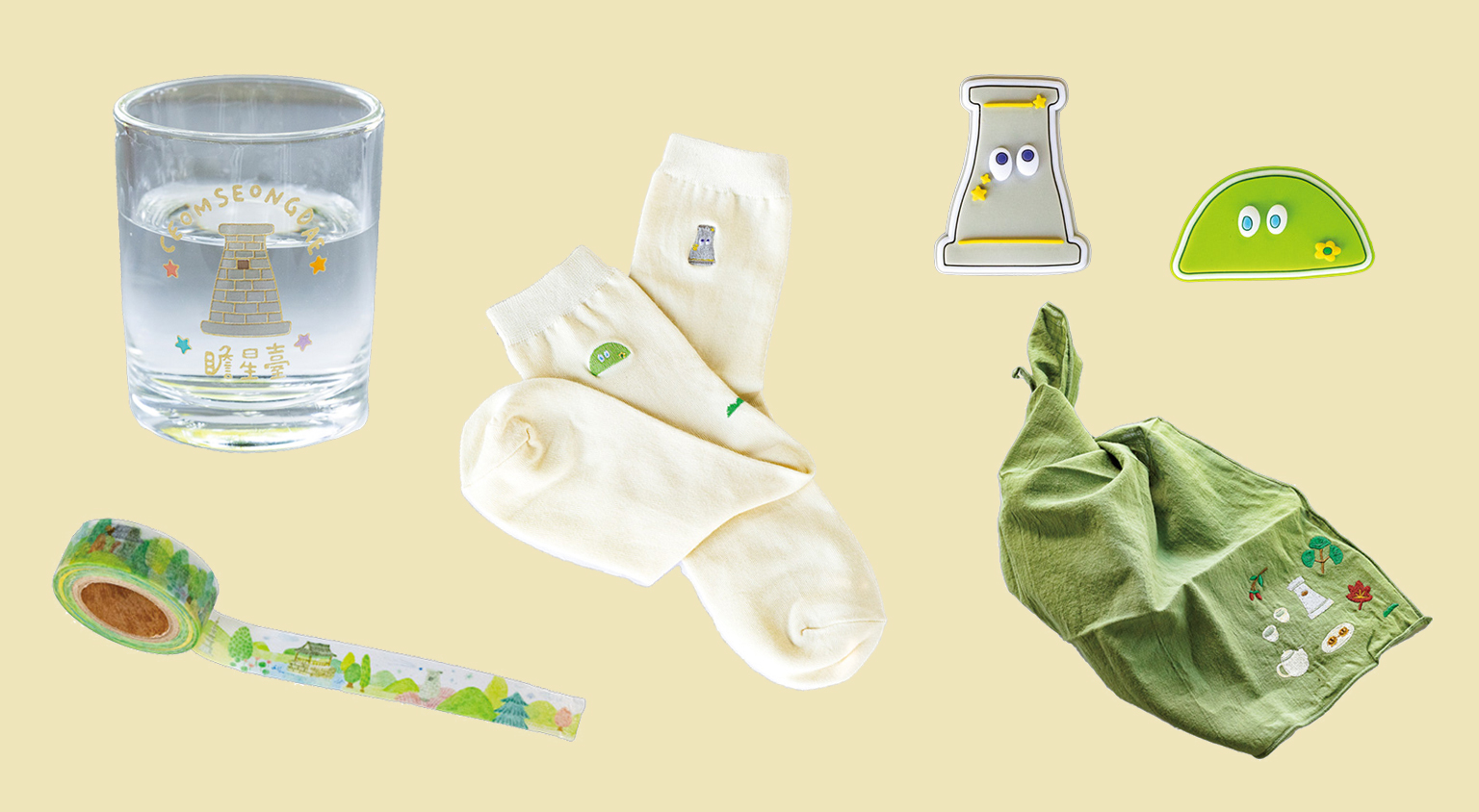 慶州の魅力はなんといっても町のあちこちにある古墳公園。旧市街の中心にある大陵苑をはじめ、慶州歴史地域として多くの古跡が世界遺産に登録されています。そんな慶州のお土産は古墳や瞻星台、新羅5世紀の金冠など、出土品をモチーフにしたものがおすすめ。可愛らしくデフォルメした雑貨はどれもかわいさ満点!
