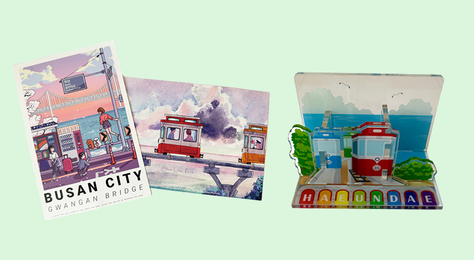海雲台の尾浦と松亭の海岸沿いを結ぶ、海雲台ブルーラインパーク。海を見ながらゆっくり進むビーチトレインと、4人乗り小型モノレールのスカイカプセルは、いまや釜山の顔となった人気アクティビティ。途中にある「海を背にした踏切のある坂道」は、日本の人気コミックの名場面に似ているとしてフォトスポットに。スカイカプセルや踏切のある風景は、お土産のモチーフにもなっているから探してみて!