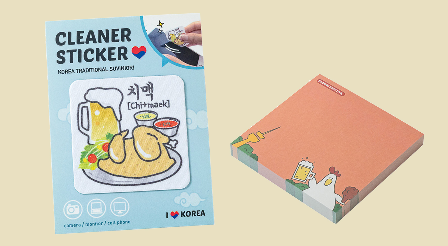 韓国グルメの王道といえばチキン&ビール(メクチュ)=チメク。大邱には発祥とされるフライドチキンのチェーン店がたくさんあり、夏にはフェスティバルも行われます。近年では各店がヤンニョムソースだけでなく、辛子やニンニクマヨ、アボカドなど多彩な味付けを競うほどに。そんな韓国グルメのシールやキーホルダーなど、プチお土産も充実! 仲良しの仲間においしいお裾分けも喜ばれそうですね。