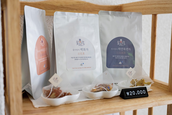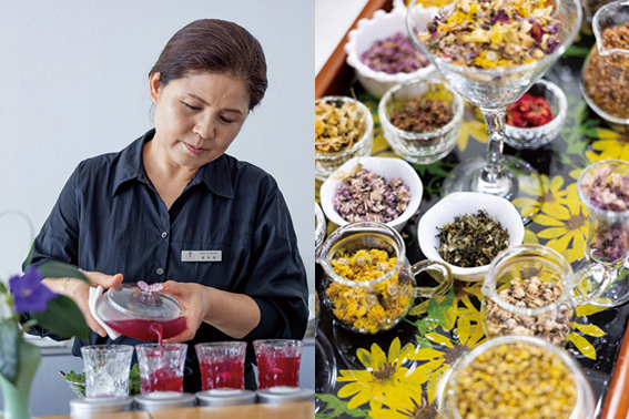 季節の花をお茶として楽しむ花茶(コッチャ)。香り・視覚・味を通じてリラクゼーションが体験できます。店ではオーナー自ら、無農薬で栽培された花を乾燥や冷凍で保存しており、体調や好みに合わせて数種類出してくれるコースも。お土産用のティーバックなら自宅でも手軽に楽しめますね!