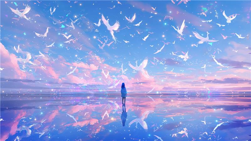 ゾーン5「大空に舞う」では、空が反射する湖から大空への転換が描かれます。