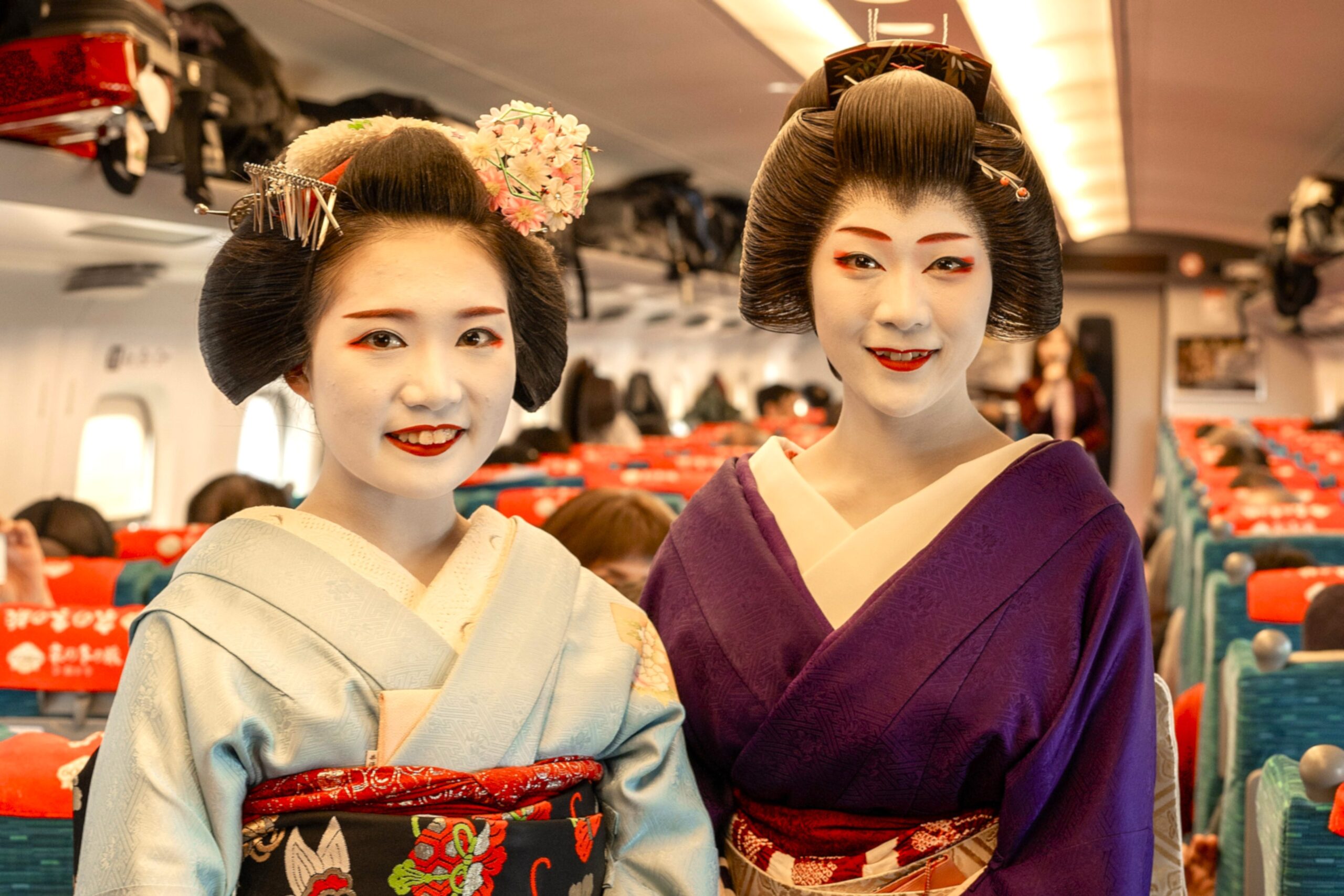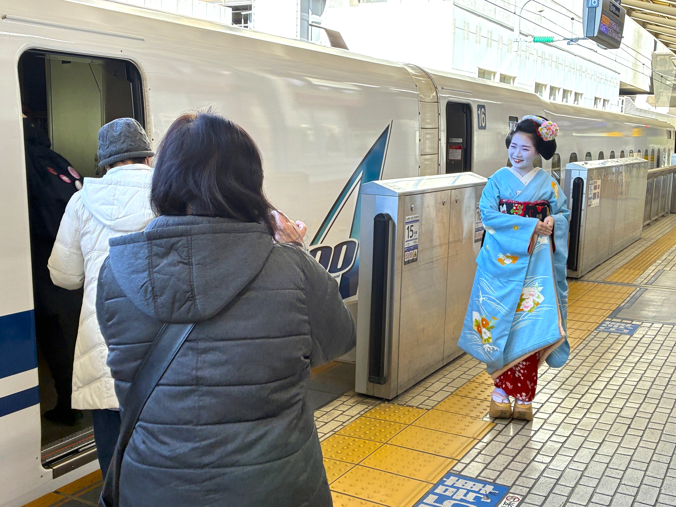 東京駅から新幹線に乗り込む際、芸妓さんと舞妓さんがお出迎えをしてくれます。
