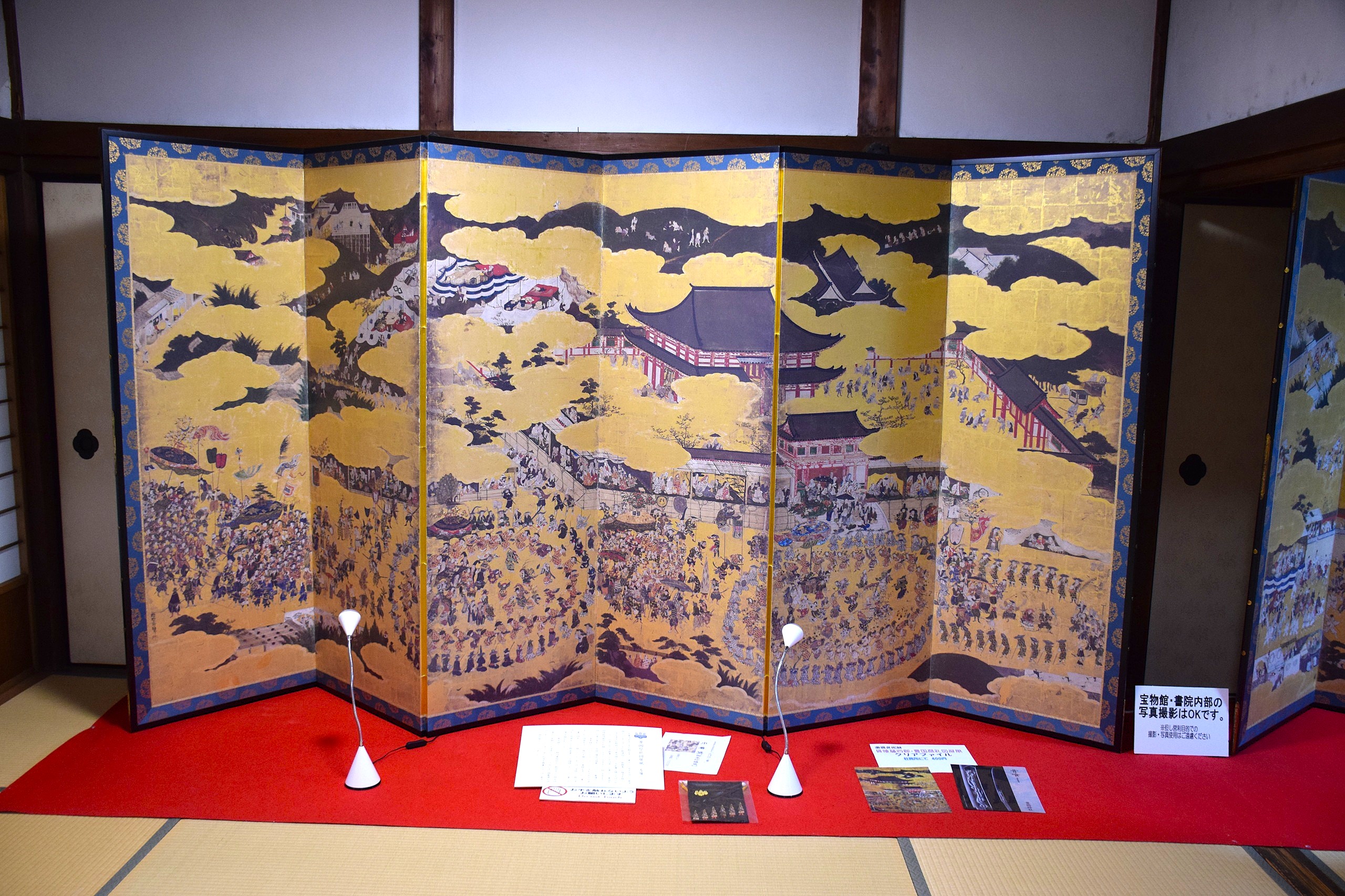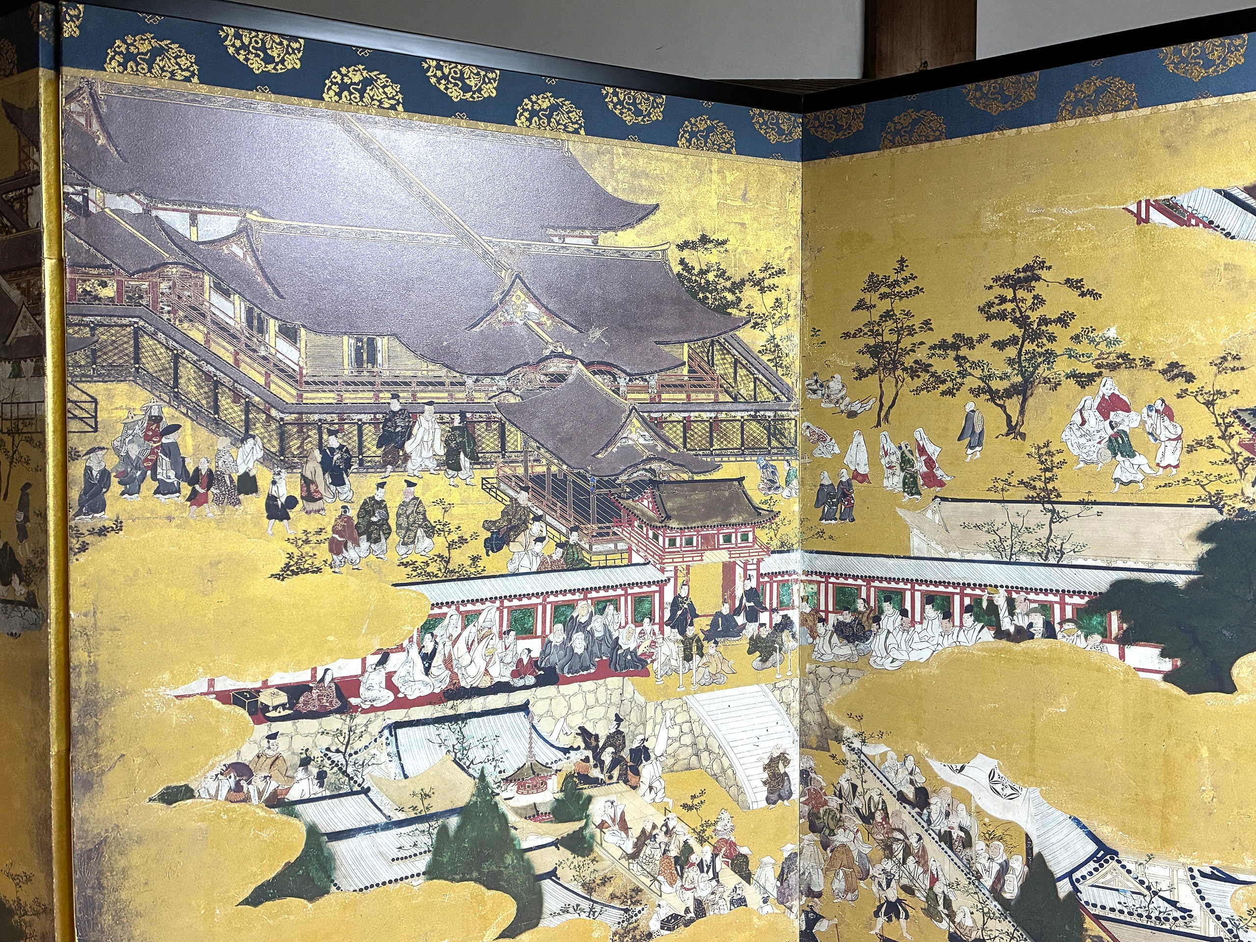 こちらの書院では、重要文化財の「豊国祭礼図屏風」の精巧なレプリカが展示されています。実物は宝物殿で保存されていますが、レプリカでは間近で細部までじっくり観察できるのが魅力。