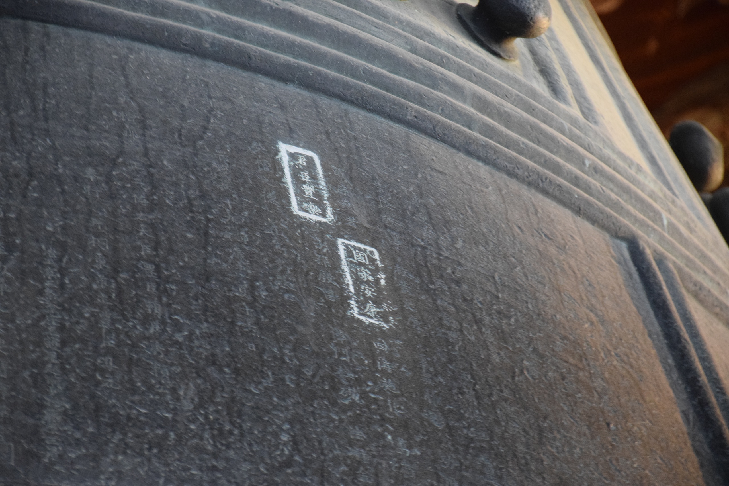境内には、重要文化財の梵鐘もあります。鐘には秀吉の功績や四字熟語がずらりと並んでいるのですが、その中の「国家安康 君臣豊楽」の文字が、徳川家康の名を分断し、豊臣の治世の方が楽しいと読めるとして問題視され、大坂冬の陣の一因となったと伝えられています。