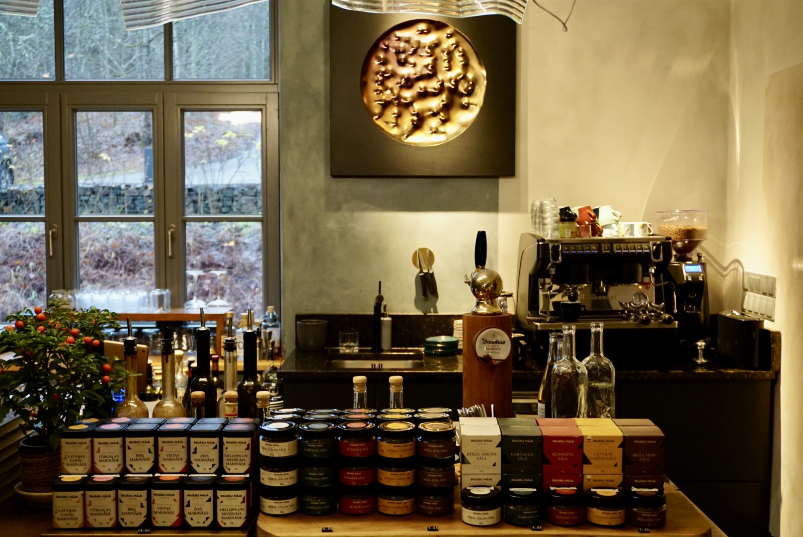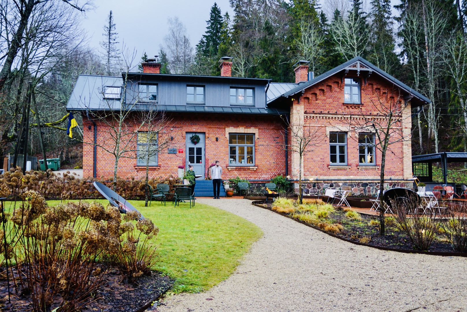 ソビエト防空壕から車で約10分、ラトヴィア最大のガウヤ川国立公園内にある「パワール・マーヤ Pavāru māja」は、築120年超の産院をリノベーションした人気のレストランです。緑あふれる敷地内では自家菜園のほか、ミツバチを飼育し蜂蜜も作っています。