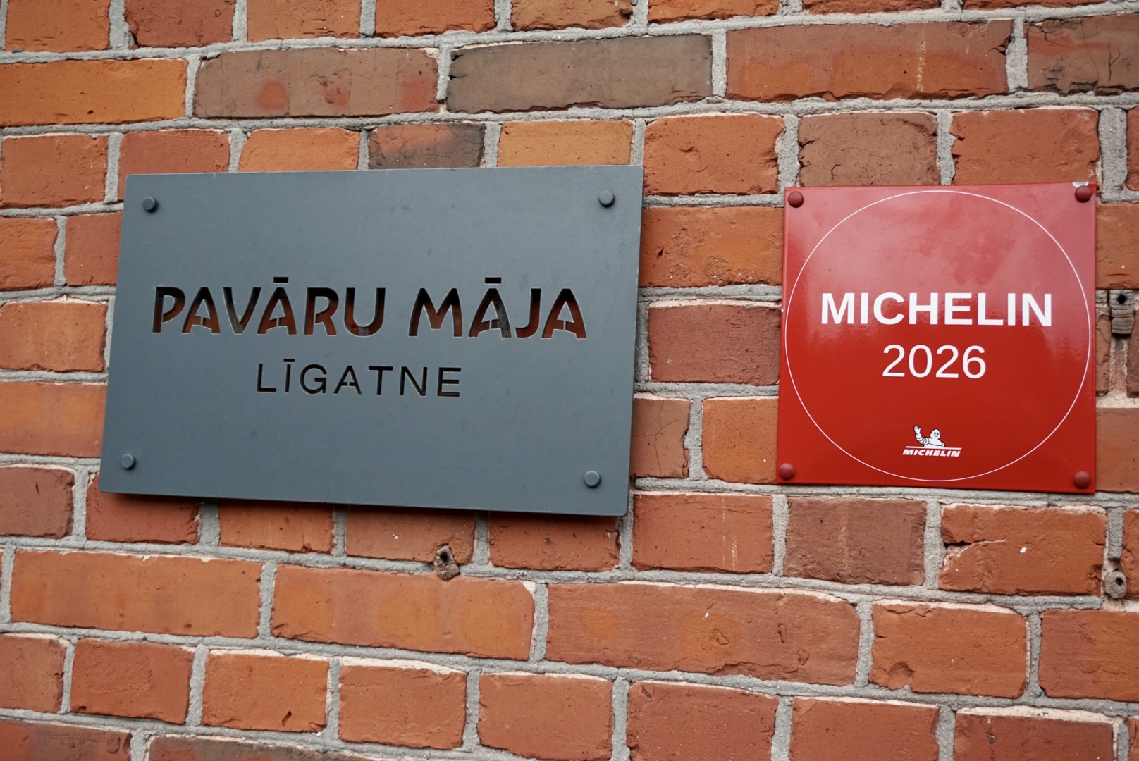 ヴェーヴェリーシャスから徒歩すぐ、赤色の外観が印象的なレストランが2026年にミシュランビブグルマンに加わった「H.E.ワナヅィンシュ H.E. Vanadziņš」です。