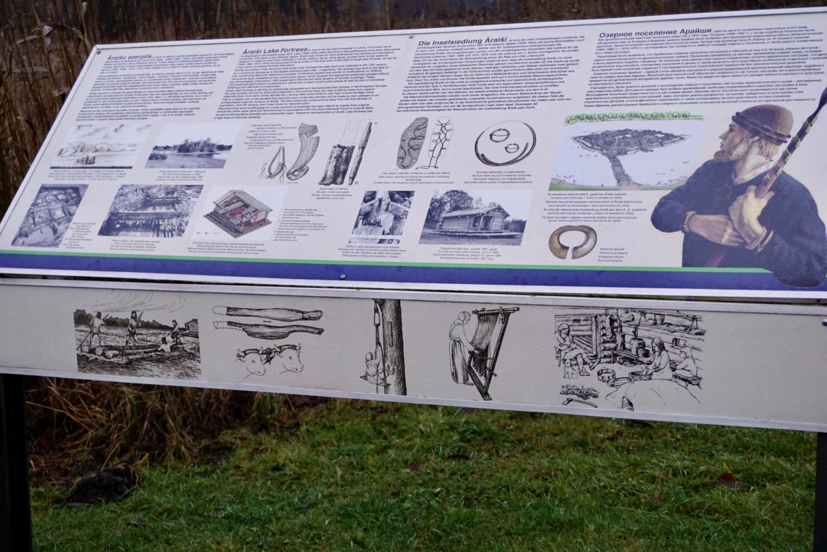 パワール・マーヤから車で約30分、ヴィゼメ州の古都ツェースィス近郊にある「アーライシ湖上住居遺跡群 Āraišu ezerpils Arheoloģiskais parks」は、9世紀の古代ラトガリ族の人の住居を復元したものです。湖に浮かぶ木造の要塞は、防衛のため湖の底に組んだ足場の上に建設しており、水害などの被害に遭うたびに建て直していたそうです。小屋の中に入ると、かまどのある台所や貯蔵庫など、ヴァイキング時代の生活の様子をのぞいてみることができます。