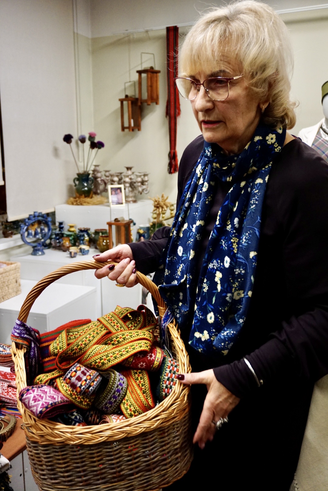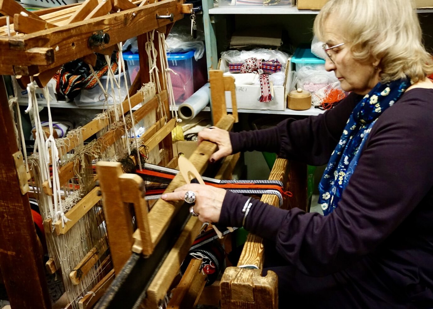 織物職人兼オーナーのダグニヤ・クプチェ Dagnija Kupčeさんは、ラトヴィア神道の神々の文様が織り込まれた特製のリエルワールデ帯を大統領へ献上したこともある、織物界の第一人者です。