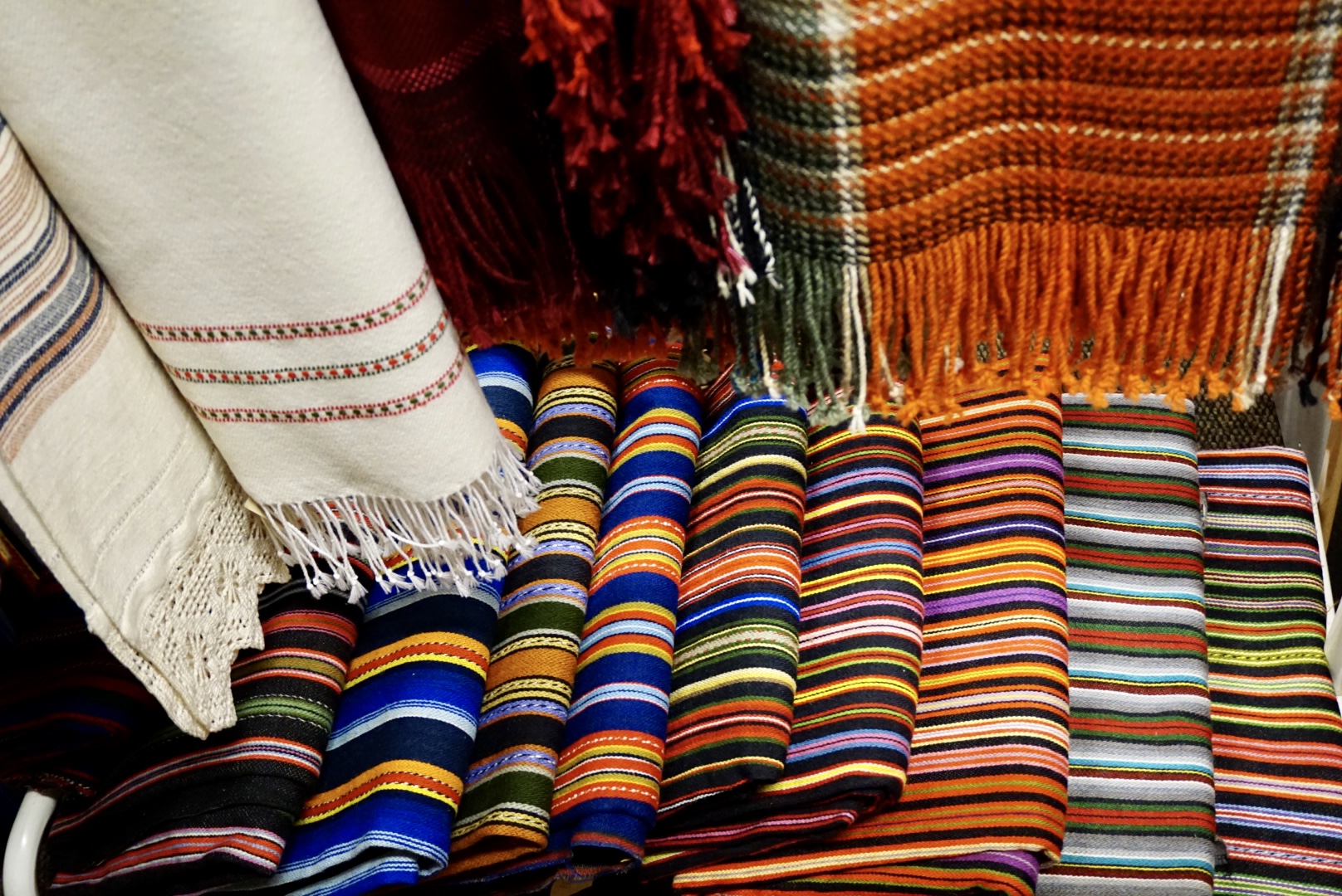 工房には色鮮やかなラトヴィアの民族衣装や手織りの帯のほか、おみやげにもピッタリのショールやミトン、靴下などが展示販売されています。事前に予約すれば、足踏みの織り機でカラフルな糸を織り込んでいく実演を見学することも可能です。伝統の織物と民族衣装を今に伝える手仕事の現場と、美しいラトヴィアの文化に触れてみてください。