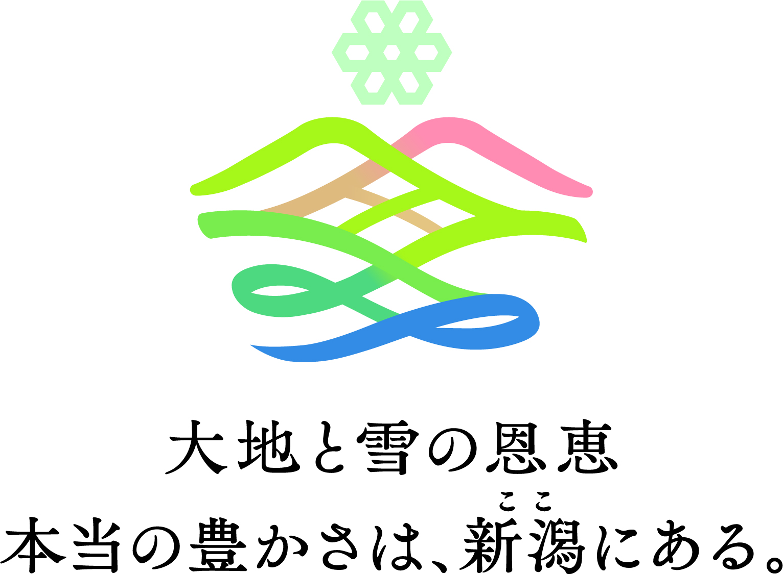 新潟県は2025年7月25日、新たな観光ブランドロゴを発表しました。県民投票を経て決定したロゴは、新潟の根源的価値である「大地と雪の恩恵」を表現。「新潟がつむいできたもの」として、2本の糸を織り上げるように新潟の風景を描いています。山々に降る雪が雪解け水となり、肥沃な大地や豊かな海を育み、食や産業、人々の営みへとつながる循環を象徴しています。雪の水色、山や田の緑と黄金、水の青やエメラルドグリーンなど、多彩な色が織りなすデザインが特徴。新潟が旅人に約束する“豊かさ”を体現するロゴとして、新潟観光のブランディングに活用されています。