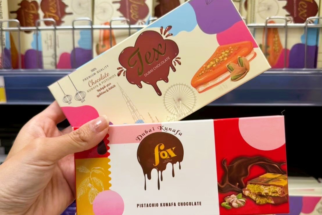 現在では多くのメーカーが同様のスタイルの商品を展開していますが、実際にはパッケージに「Dubai Chocolate」と明記されていることは少なく、「Pistachio & Knafeh Chocolate」などの名称で販売されていることが一般的です。